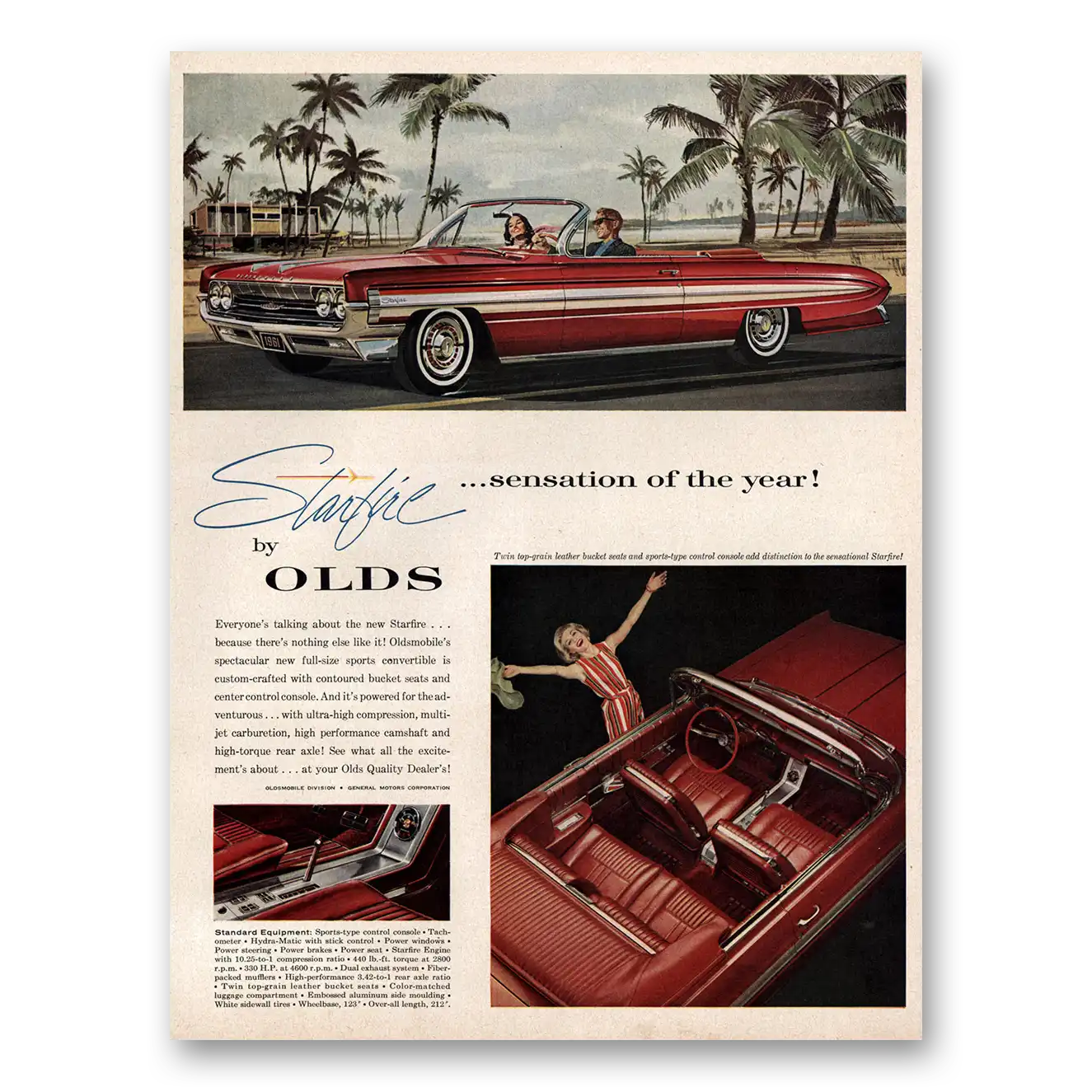 This is an original 1961 Oldsmobile Starfire print ad published by Oldsmobile.