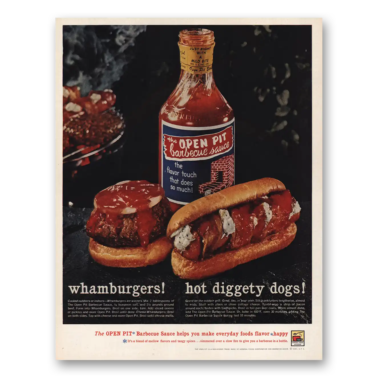 1961 Open Pit Barbecue Sauce Print Ad | Whamburgers