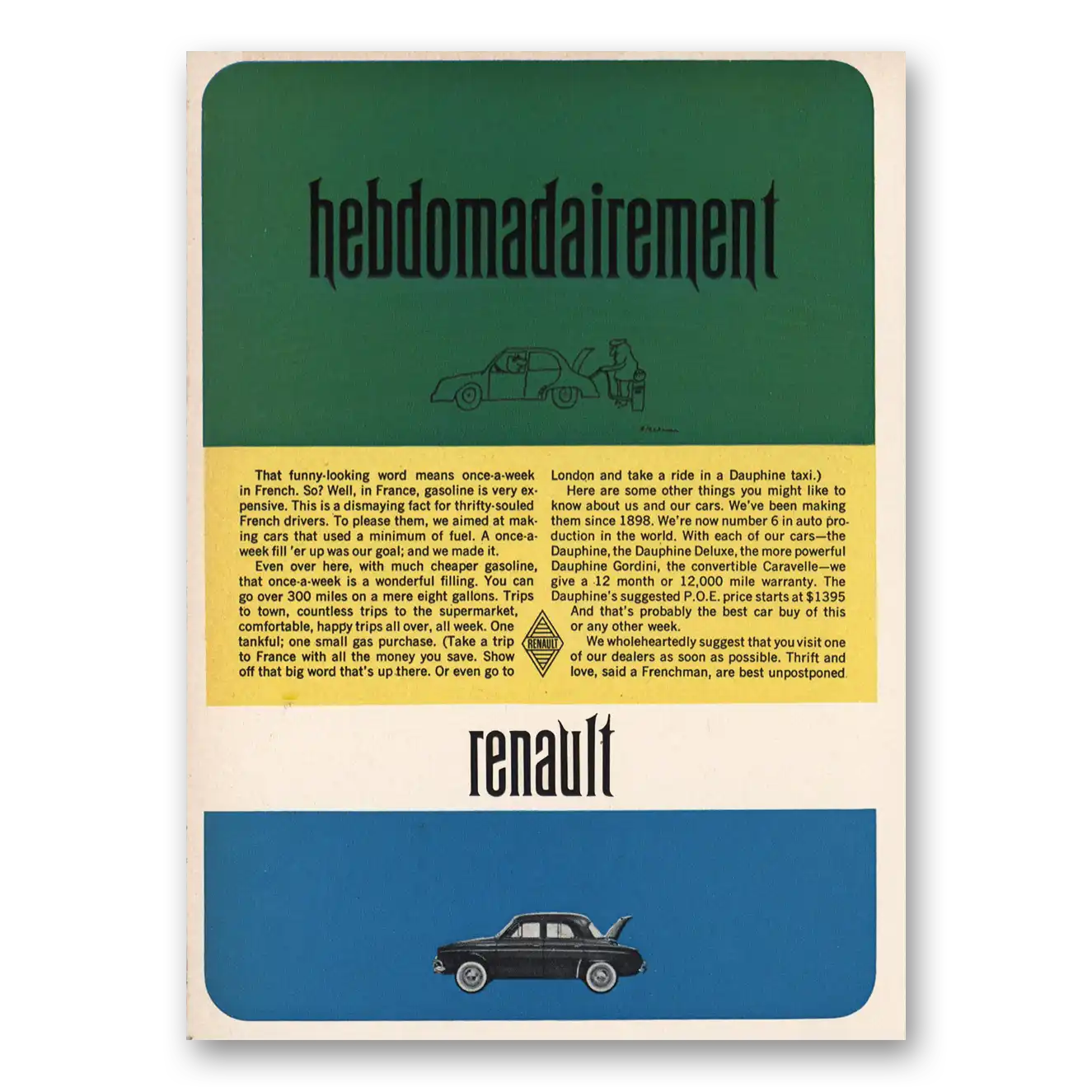 1961 Renault Dauphine Print Ad | Hebdomadairement
