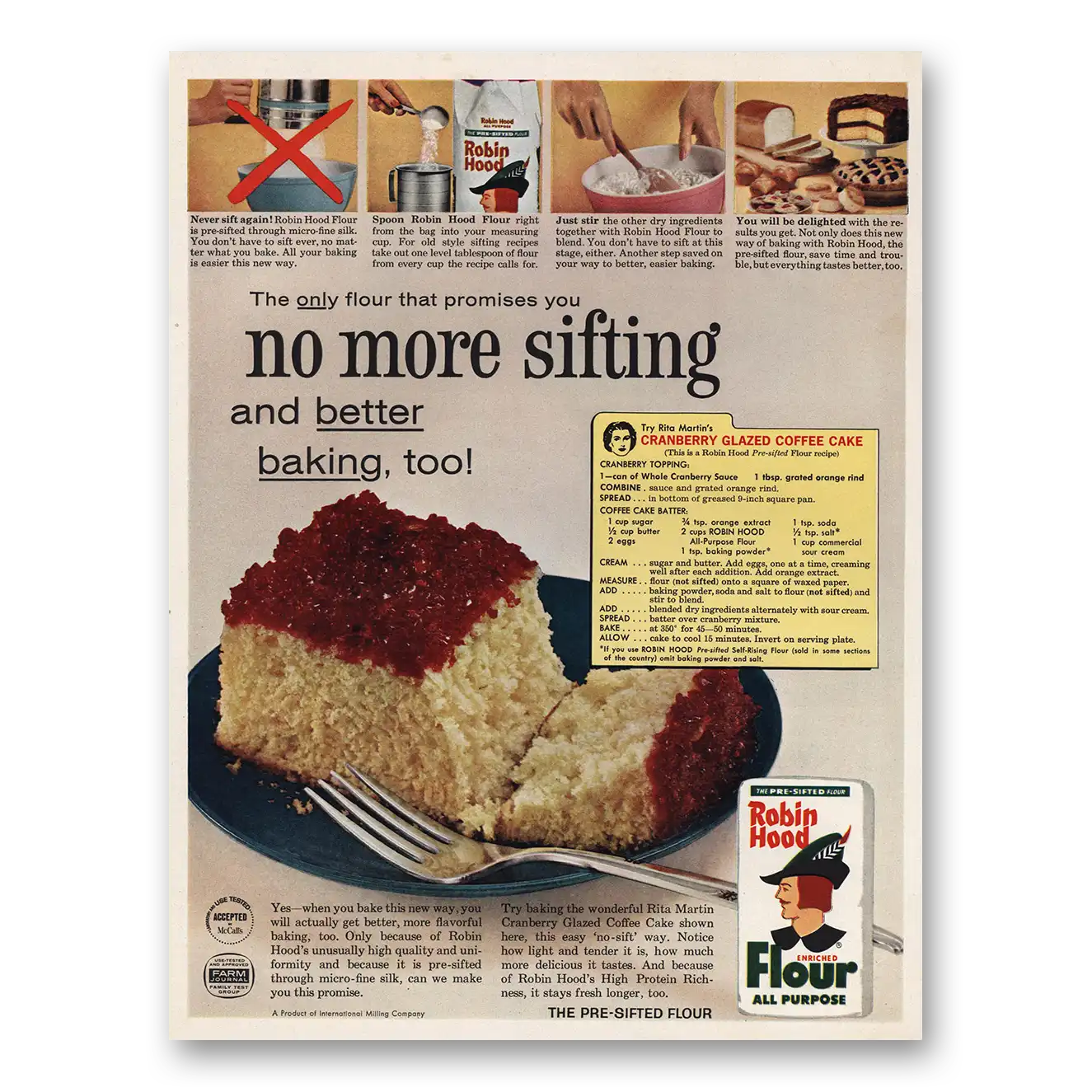 1961 Robin Hood Flour Print Ad | No More Sifting