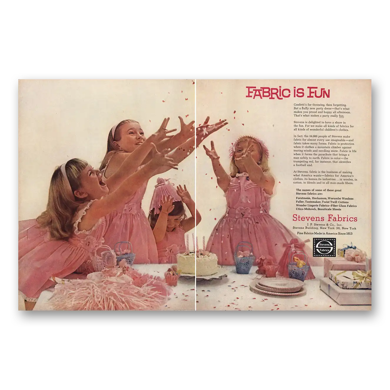 This is an original 1961 Stevens Fabrics print ad published by J P Stevens.