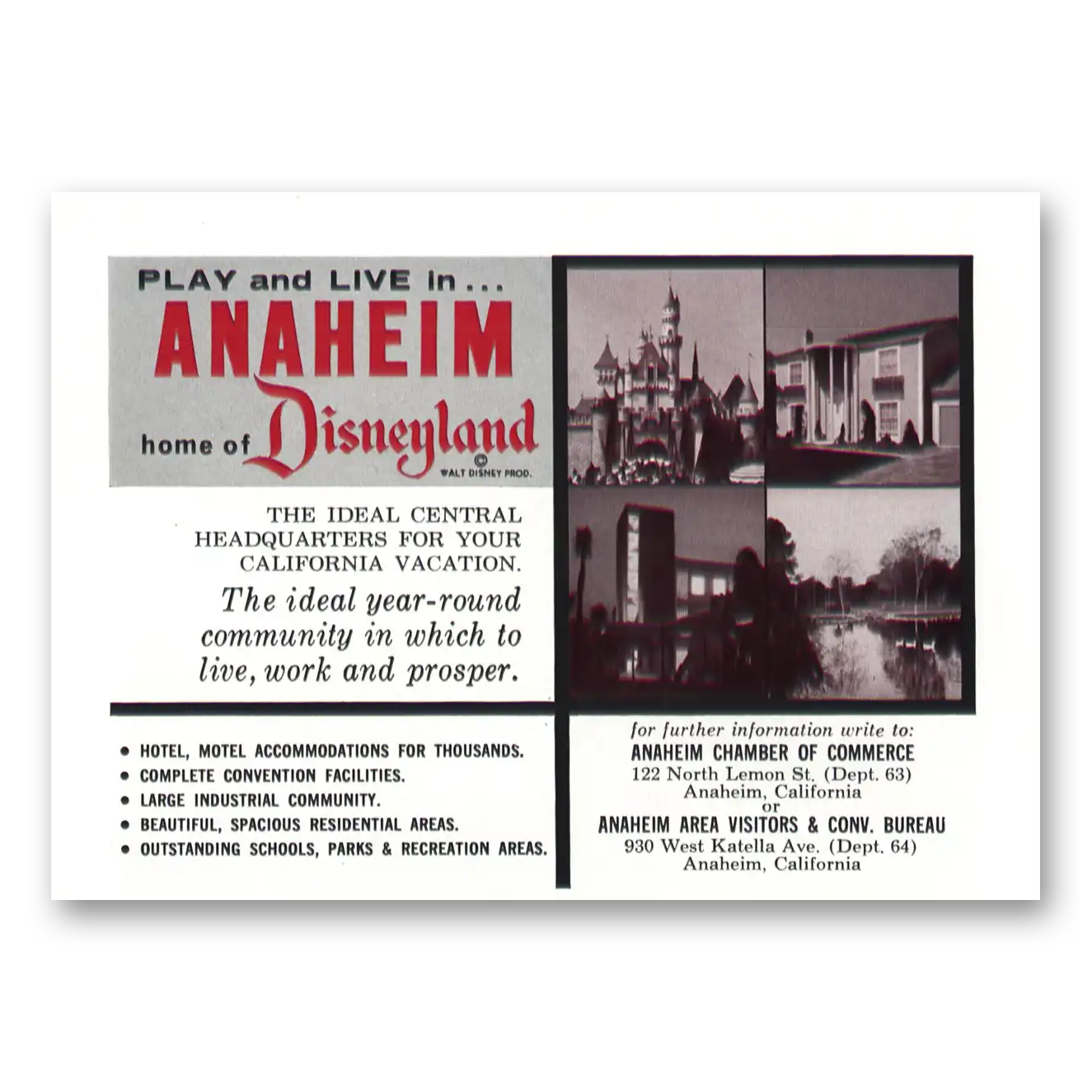 This is an original 1962 Anaheim California print ad published by Anaheim California.