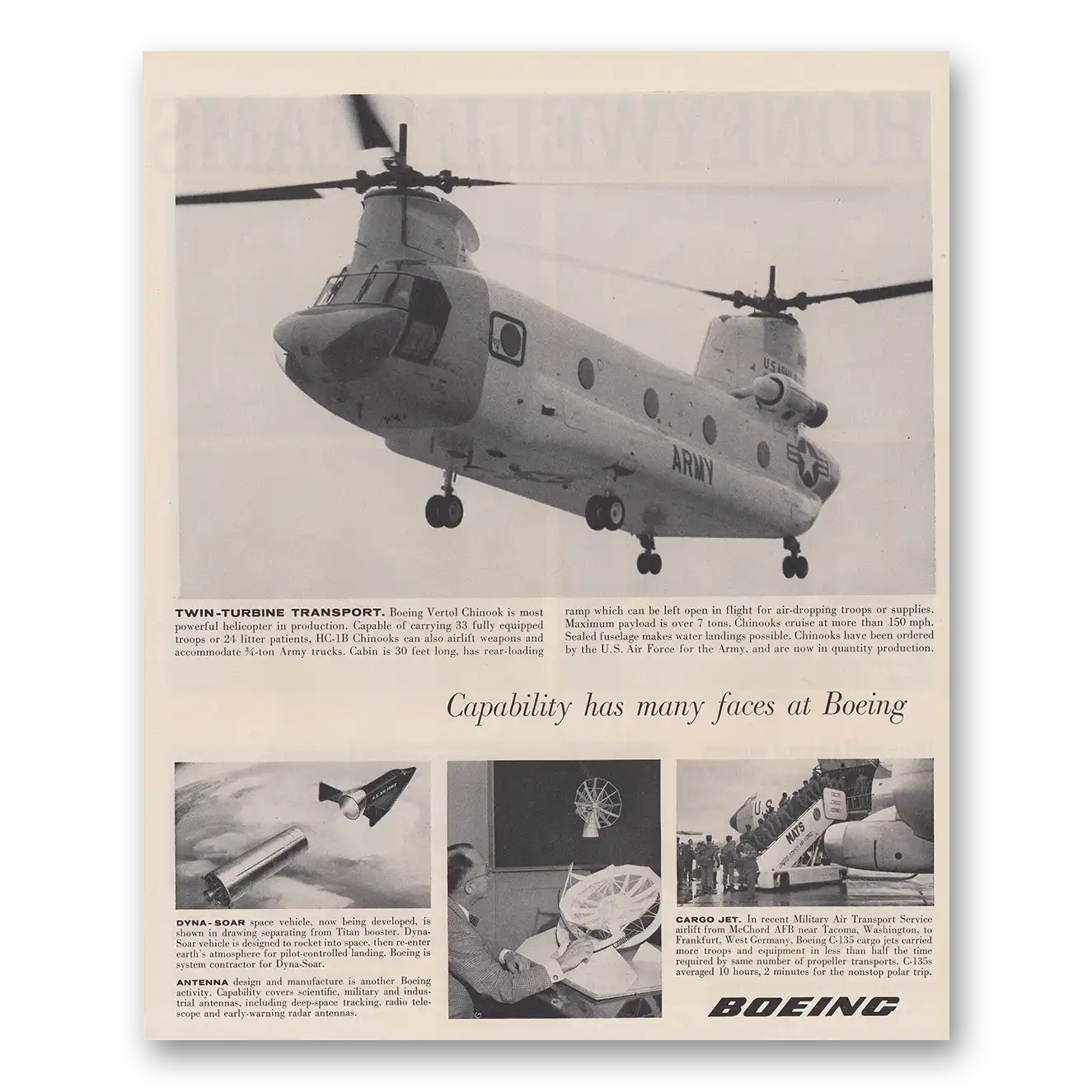 This is an original 1962 Boeing Helicopter print ad published by Boeing.