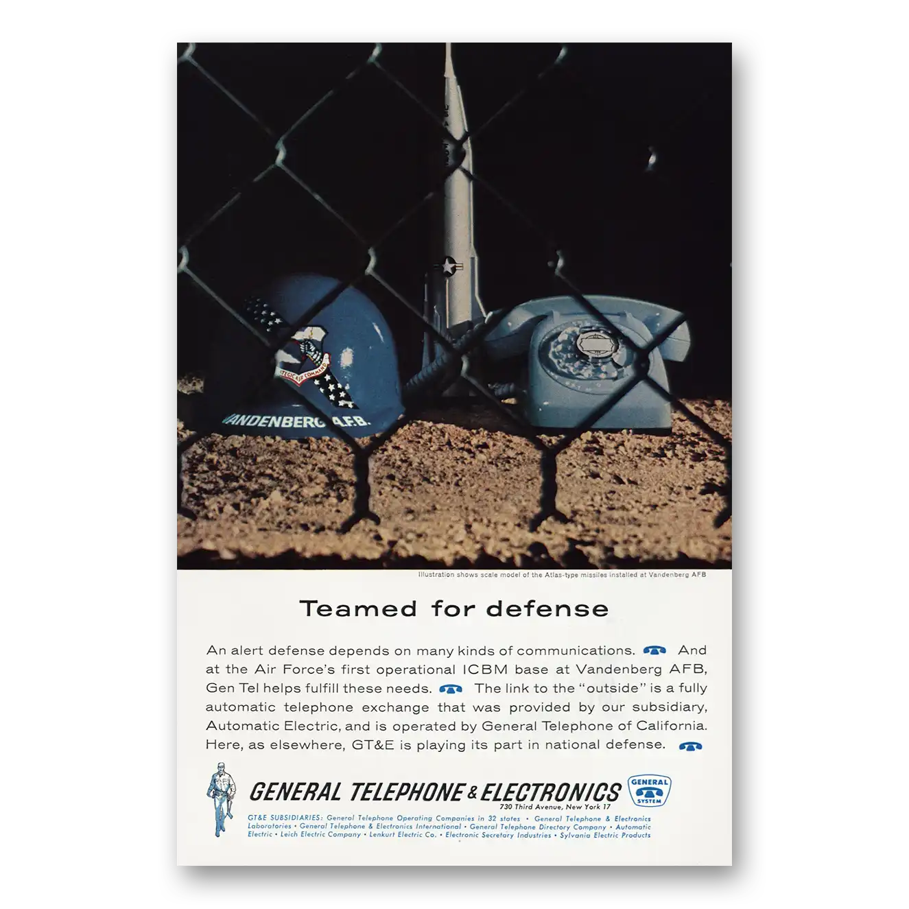 1962 General Telephone GTE Print Ad | Teamed For Defense