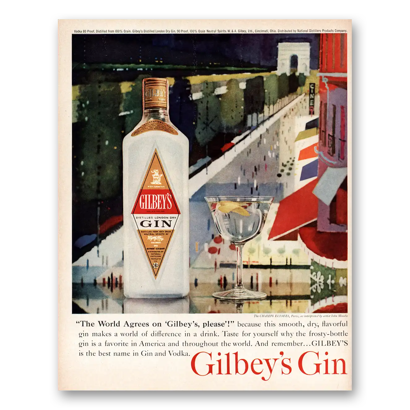 1962 Gilbeys Gin Print Ad | Champs Elysees