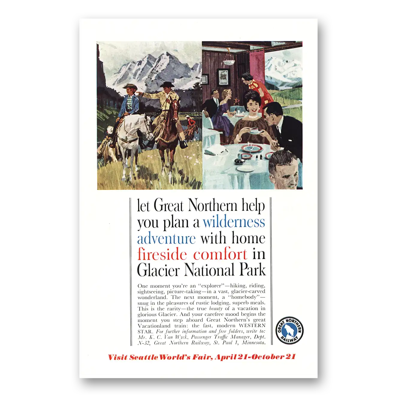 This is an original 1962 Great Northern Railway print ad published by Great Northern Railway.