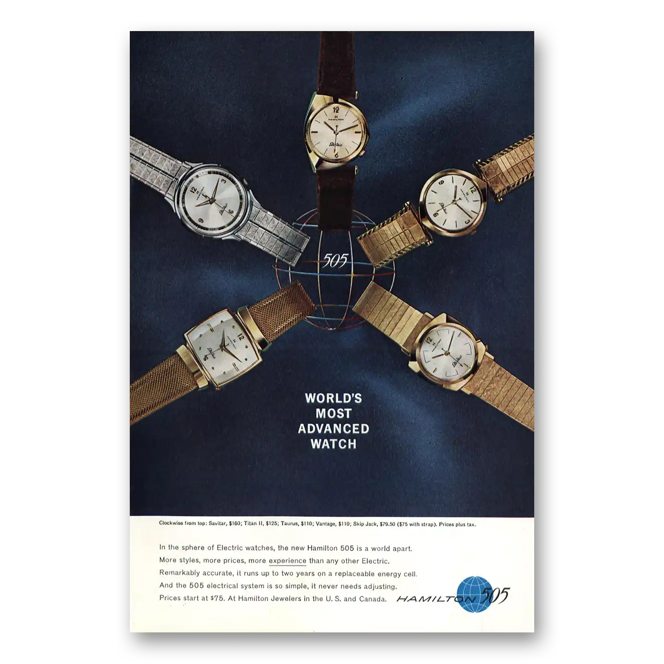 1962 Hamilton Watch Print Ad | Sphere Electric Watches