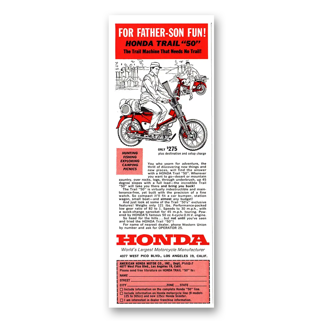 1962 Honda Motorcycle Print Ad | Trail 50 For Father Son Fun