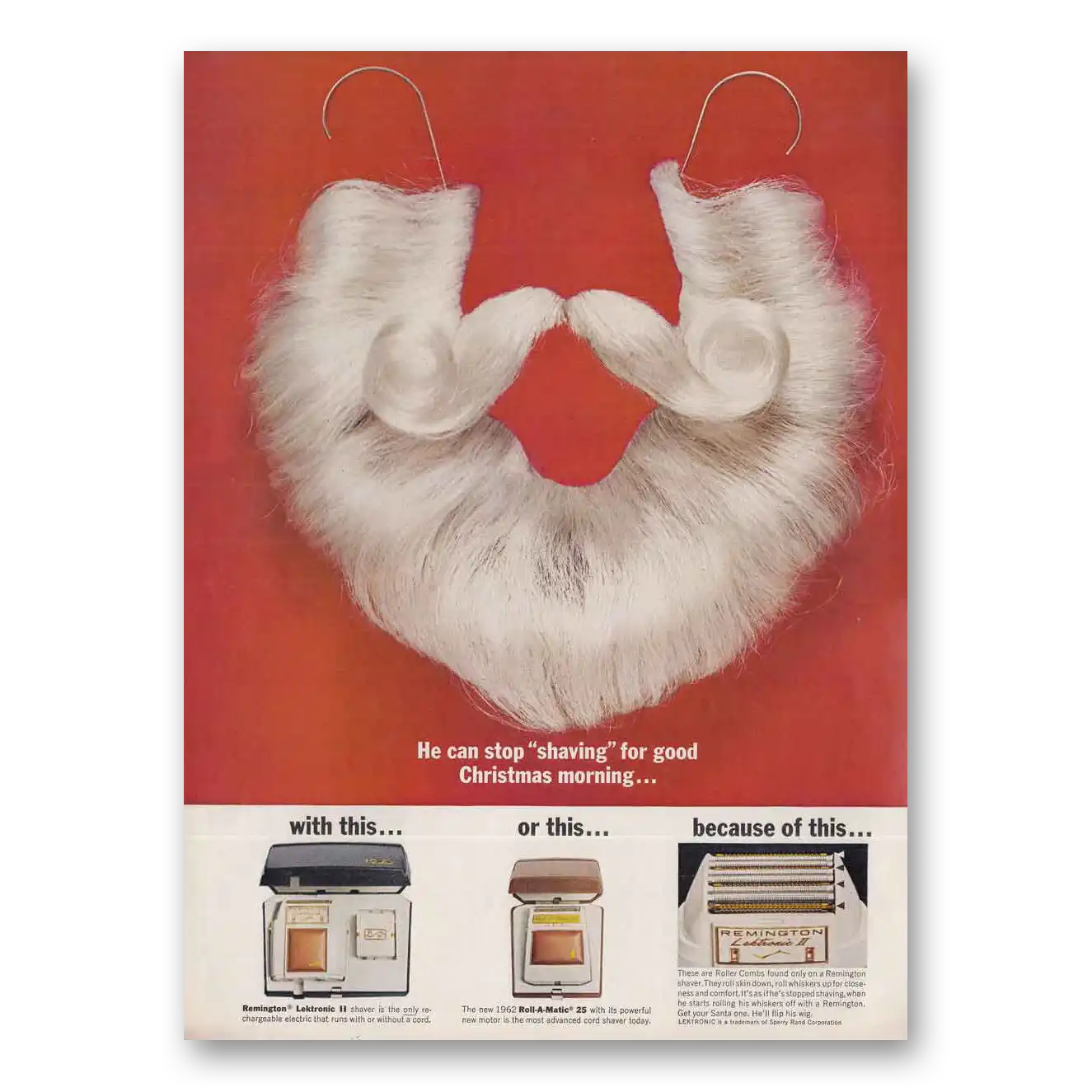 This is an original 1962 Remington Rand Electric Shaver print ad published by Remington Rand Electric Shaver.