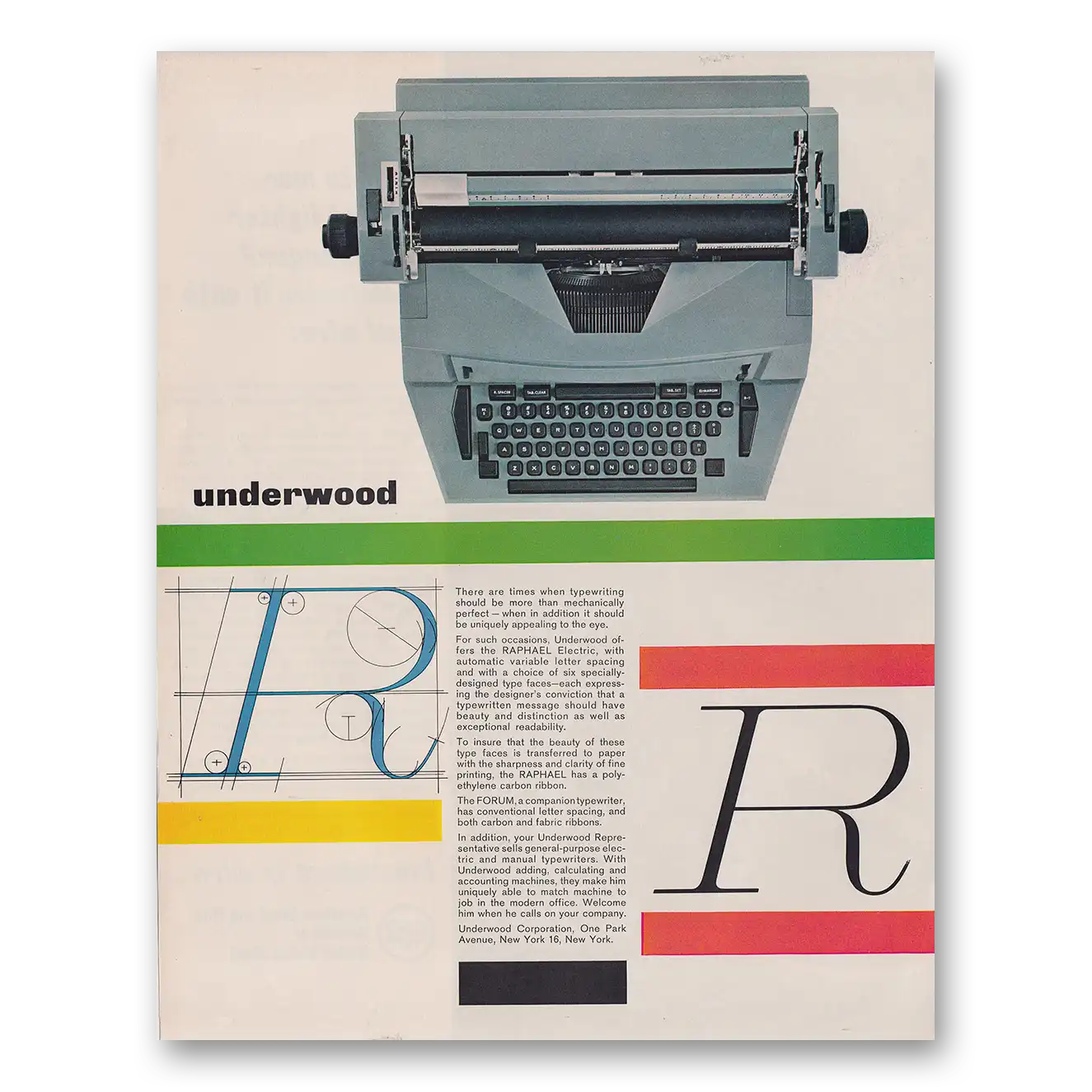 This is an original 1962 Underwood Raphael Typewriter print ad published by Underwood.