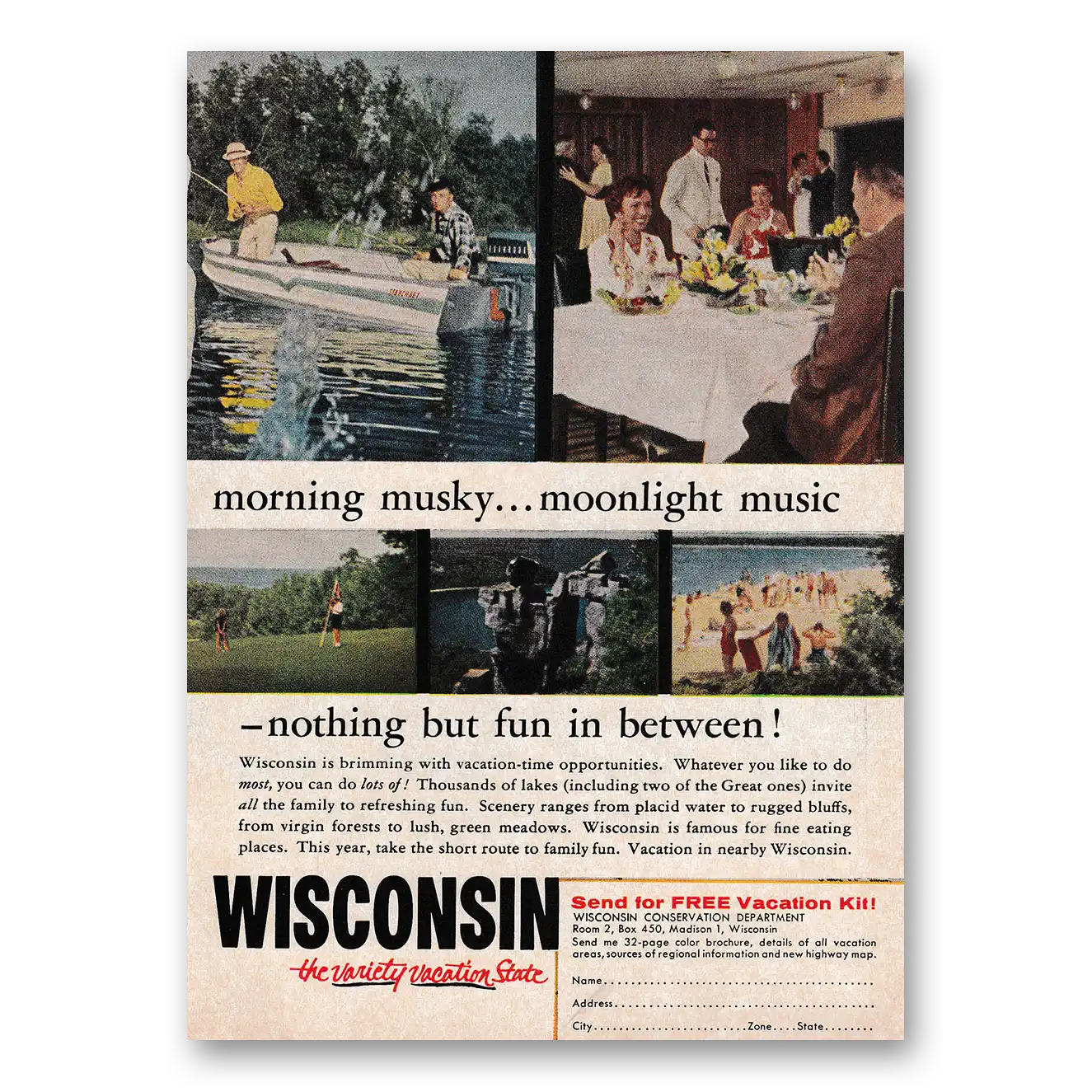 This is an original 1962 Wisconsin print ad published by Wisconsin Tourism.