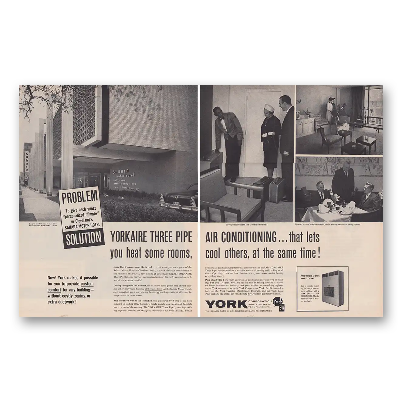This is an original 1962 York Air Conditioning print ad published by York Corporation.