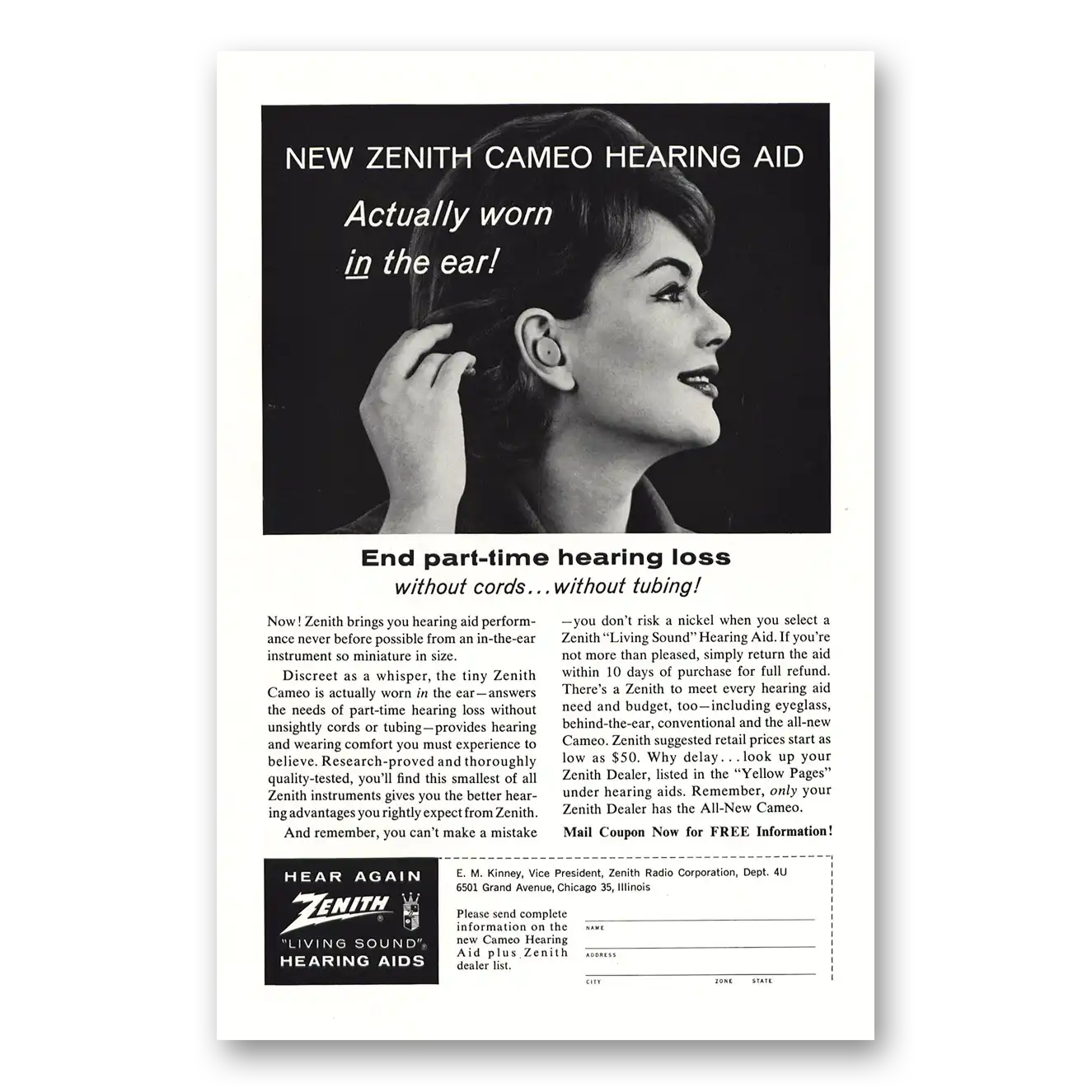 1962 Zenith Hearing Aid Print Ad | Cameo