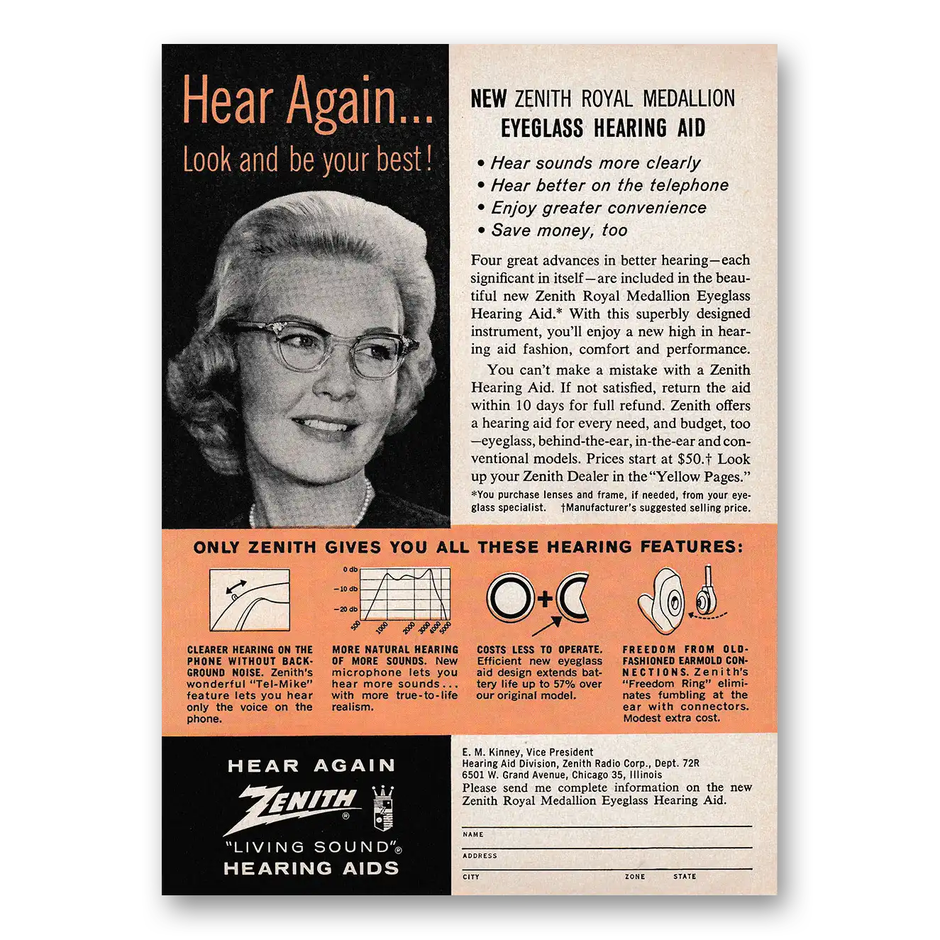1962 Zenith Hearing Aid Print Ad | Eyeglass Hearing Aid