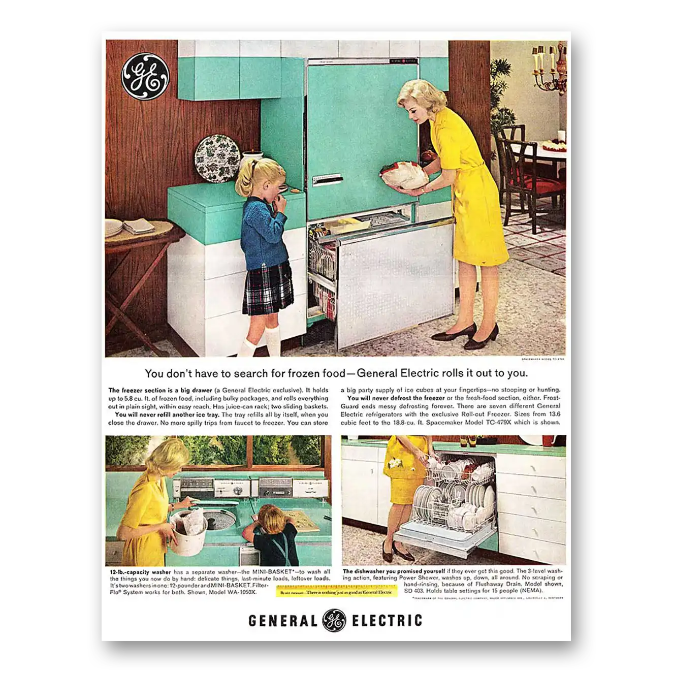 This is an original 1963 General Electric Freezer print ad published by General Electric.