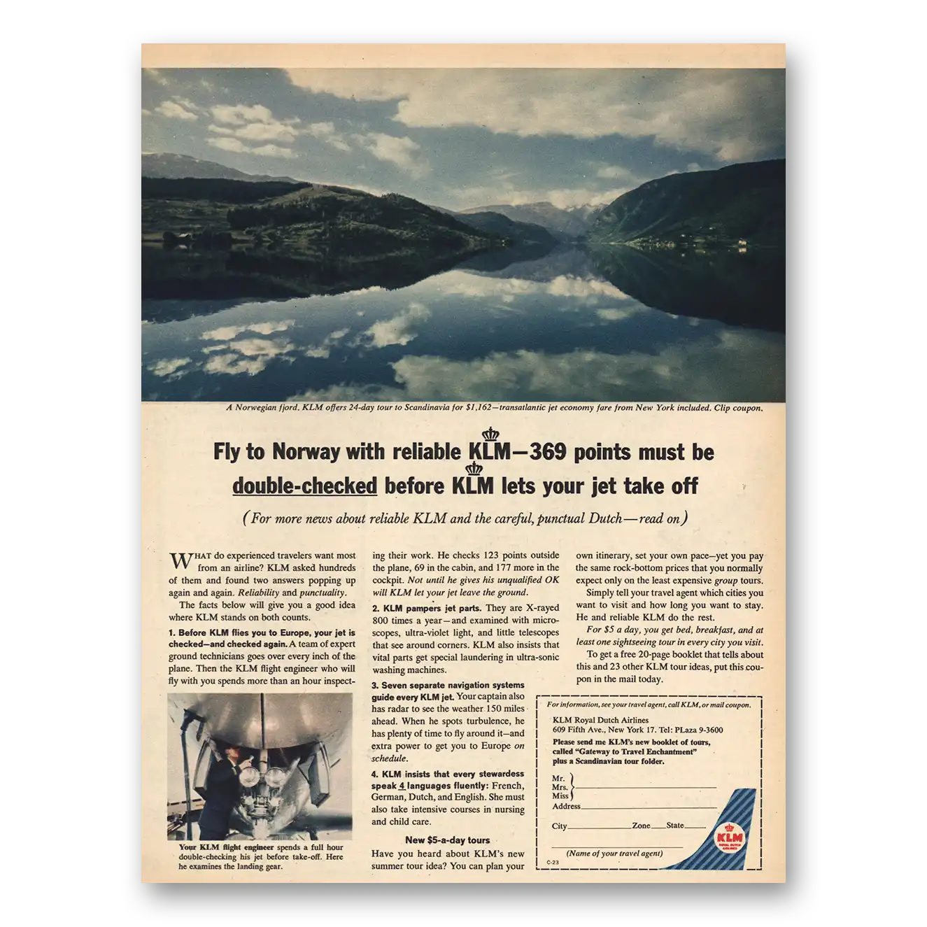 1963 KLM Royal Dutch Airlines Print Ad | Fly To Norway