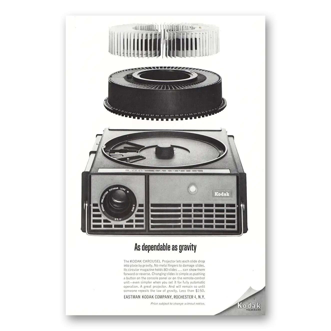 1963 Kodak Carousel Projector Print Ad | Dependable As Gravity
