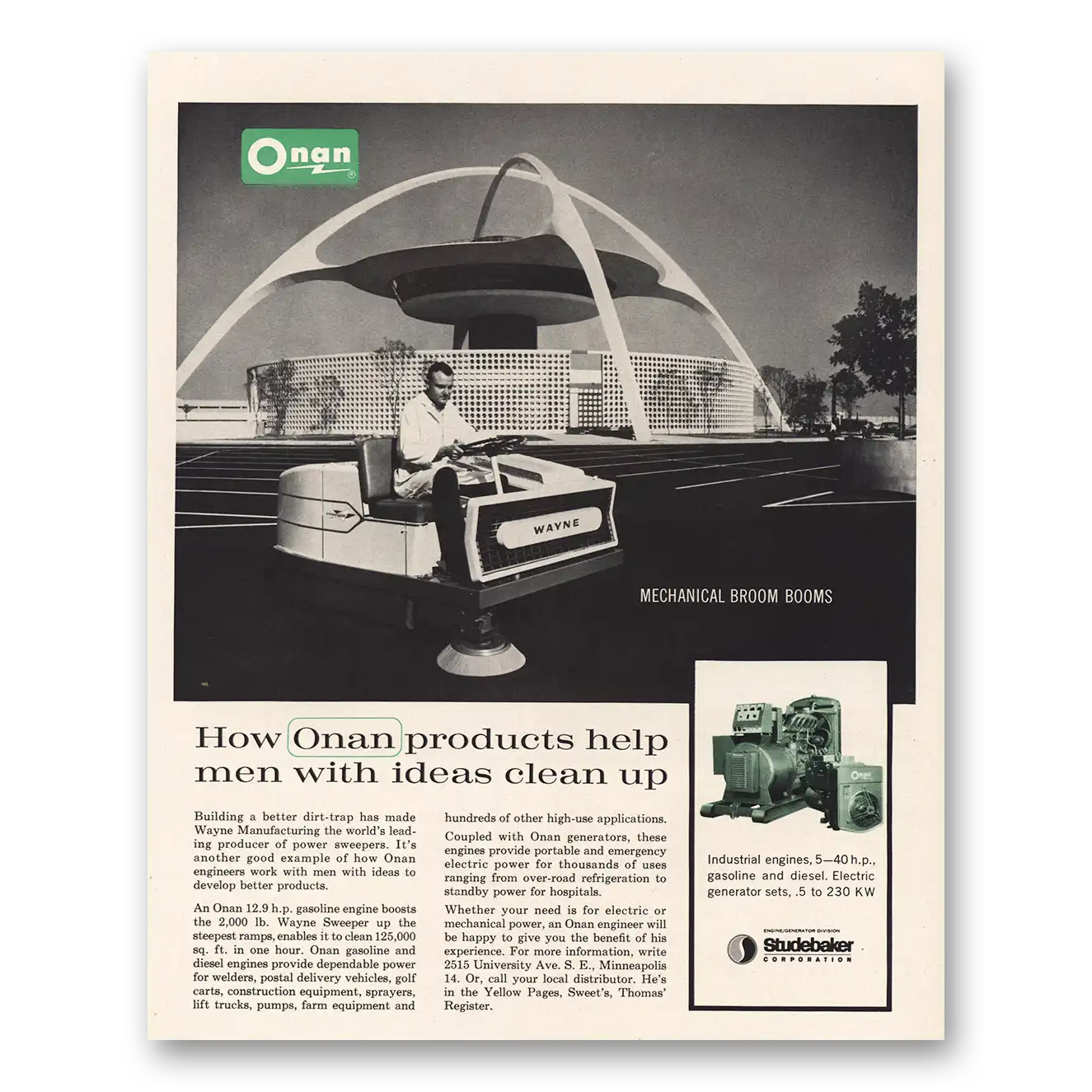 1963 Onan Print Ad | Mechanical Broom