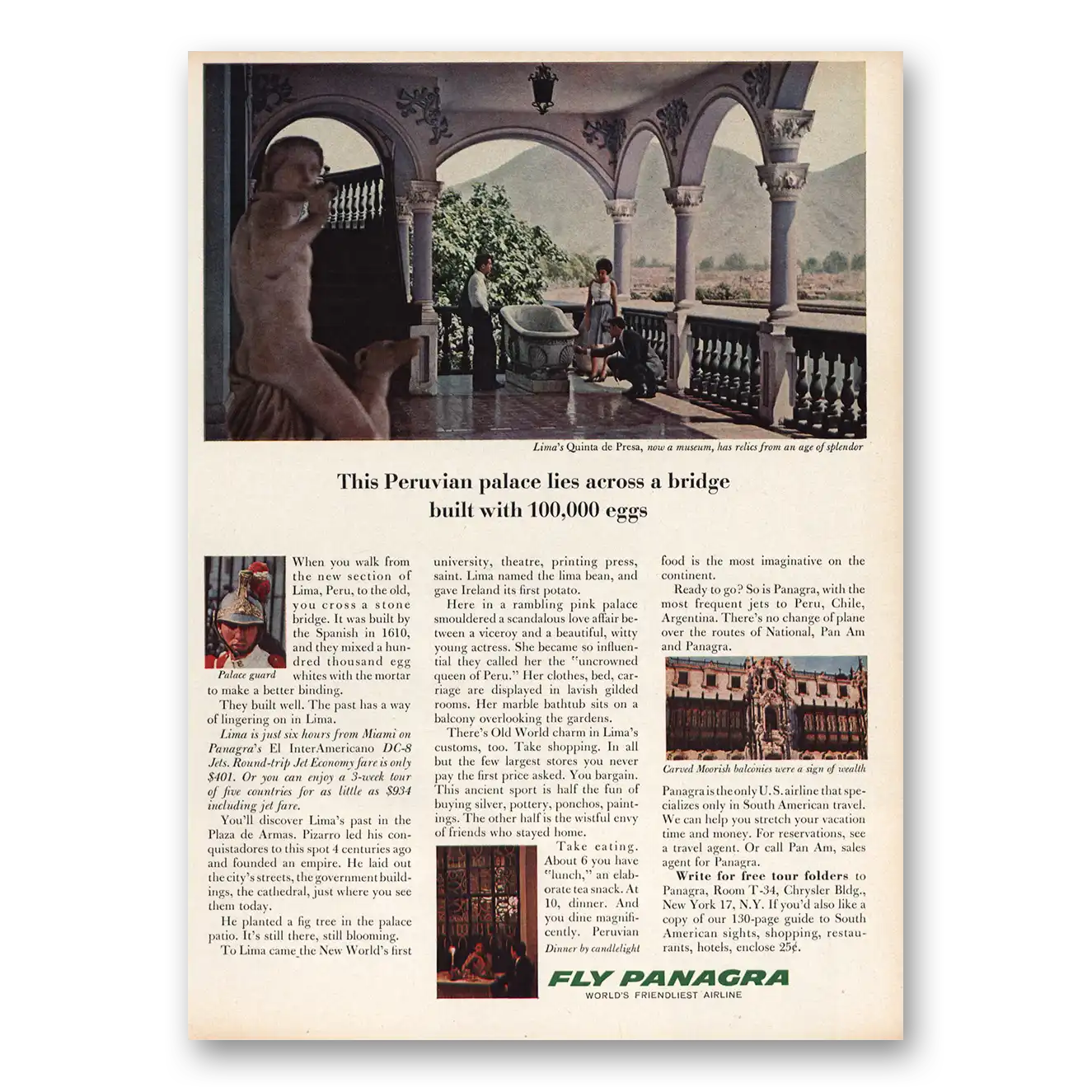 1963 Panagra Airlines Print Ad | Peruvian Palace