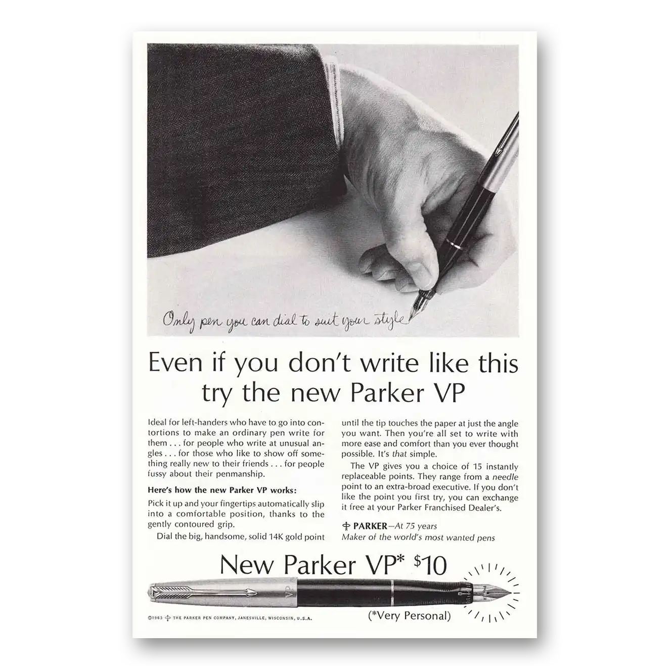 This is an original 1963 Parker VP Pen print ad published by Parker Pens.