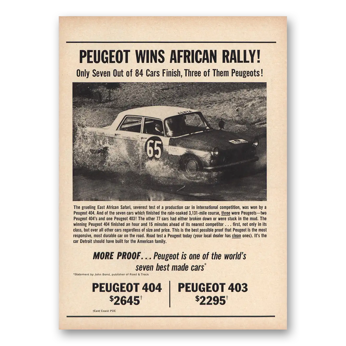 1963 Peugeot 404 Print Ad | African Rally