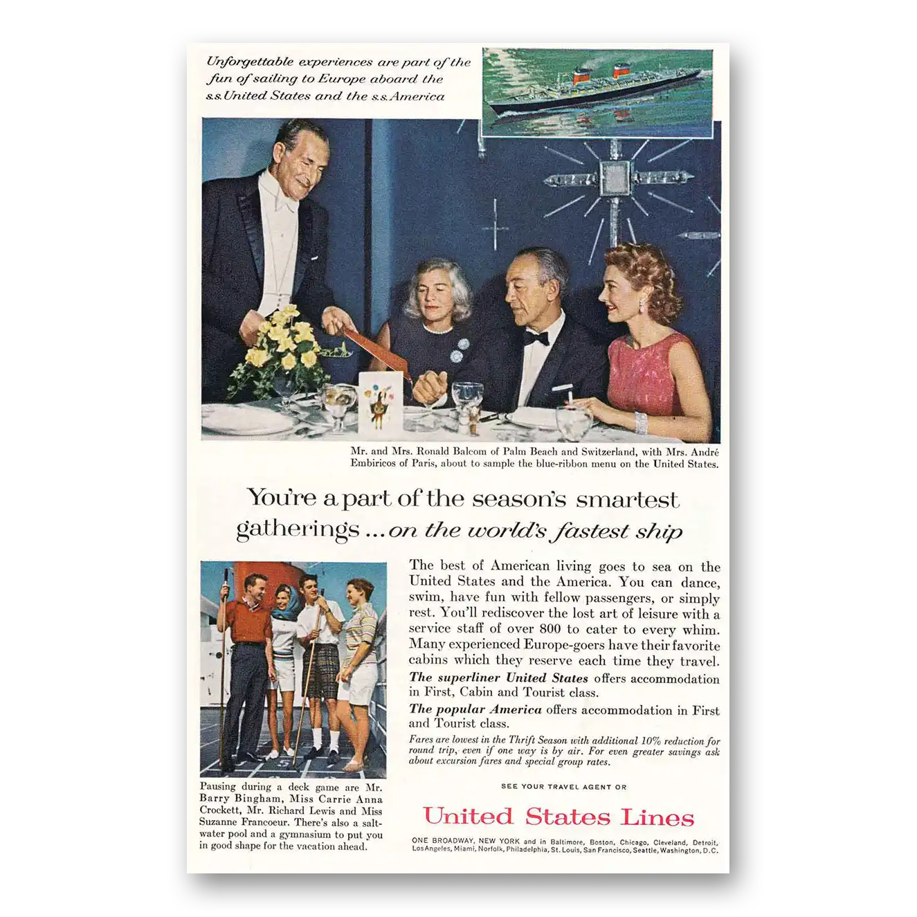 1963 United States Lines Print Ad | Fastest Ship