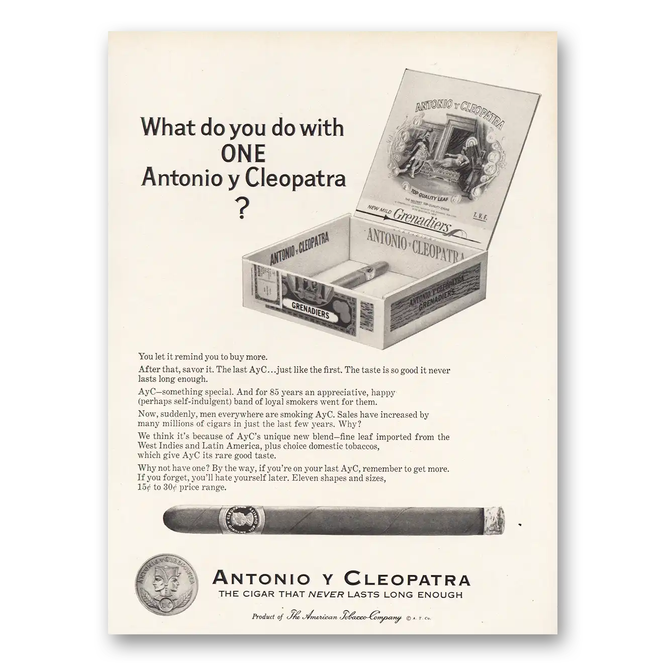 1964 Antonio Y Cleopatra Cigars Print Ad | One