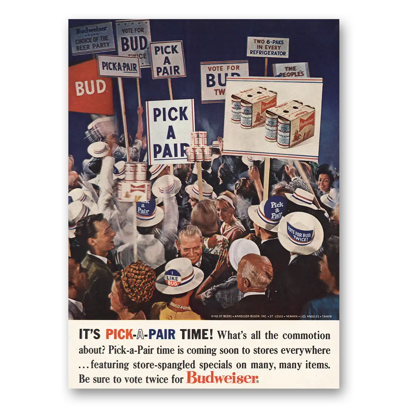 1964 Budweiser Beer Print Ad | Pick Beer Election