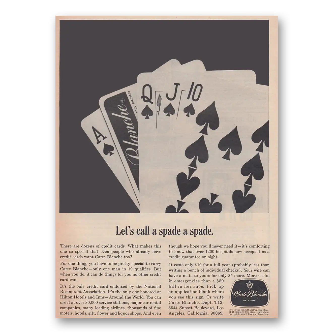 1964 Carte Blanche Credit Card Print Ad | Call Spade