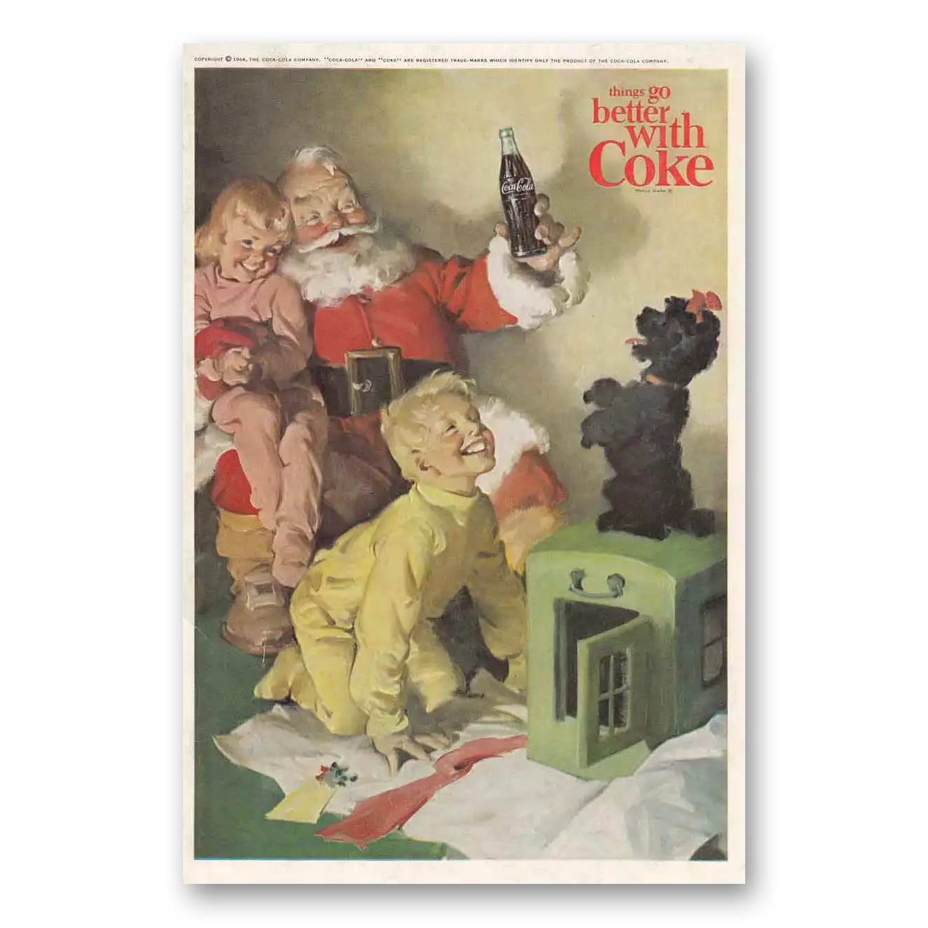 1964 Coca Cola Print Ad | Santa Claus Poodle