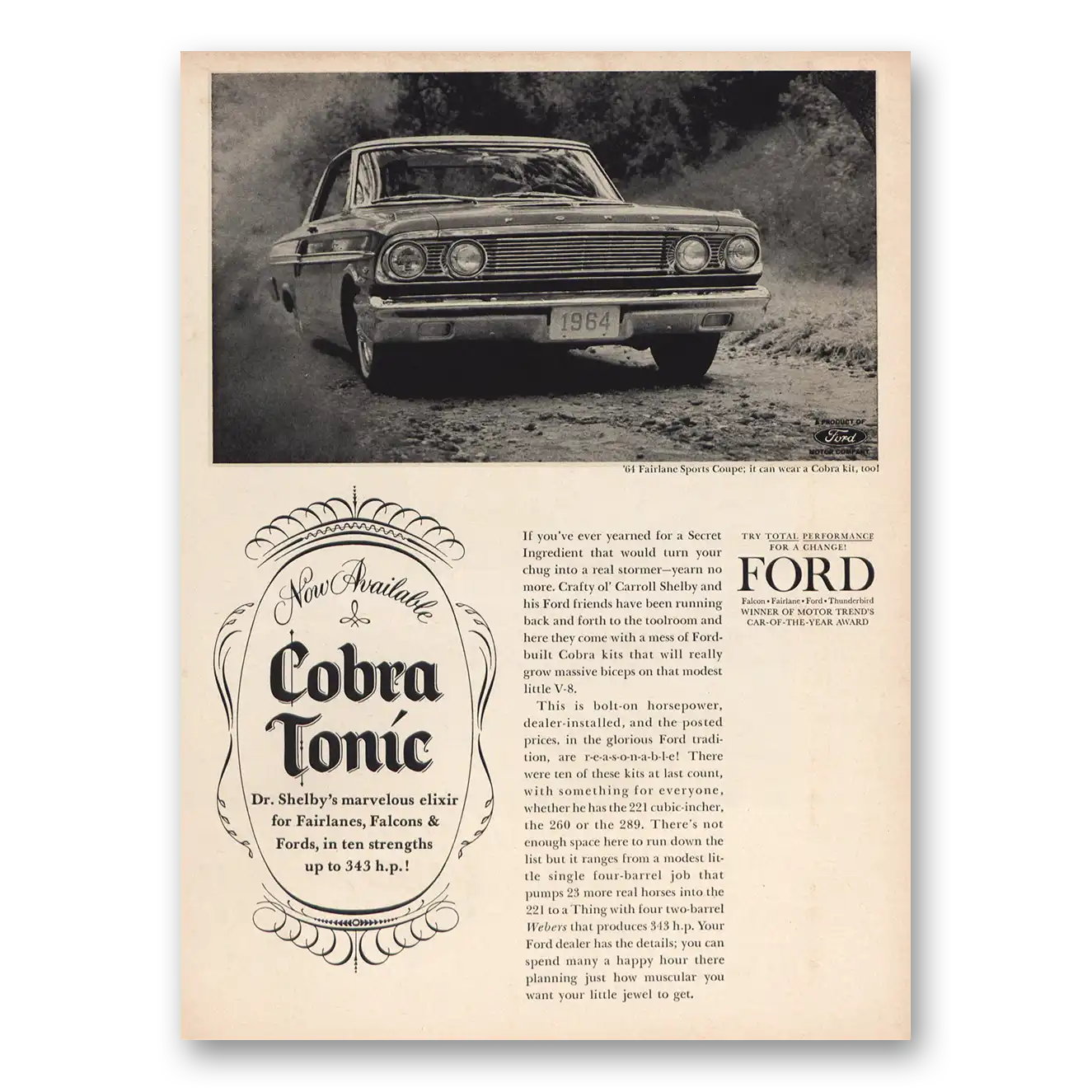 1964 Ford Fairlane Print Ad | Cobra Tonic