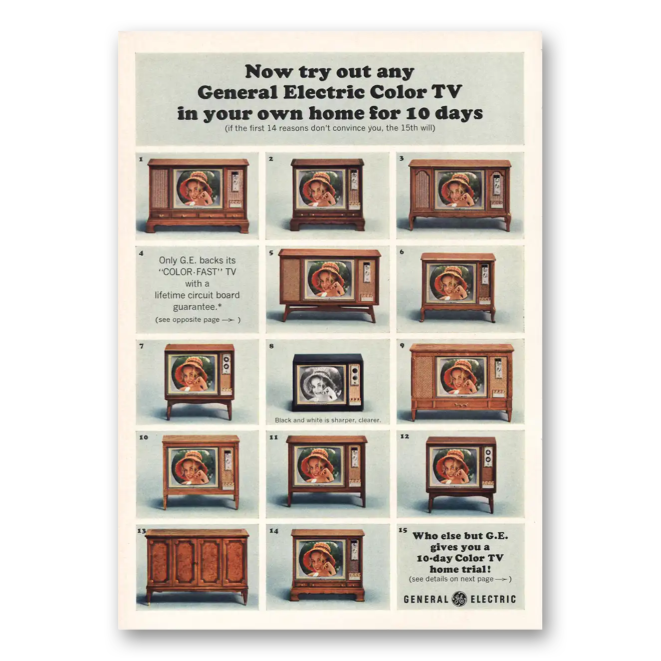 1964 General Electric Print Ad | Try Out Any Color Tv