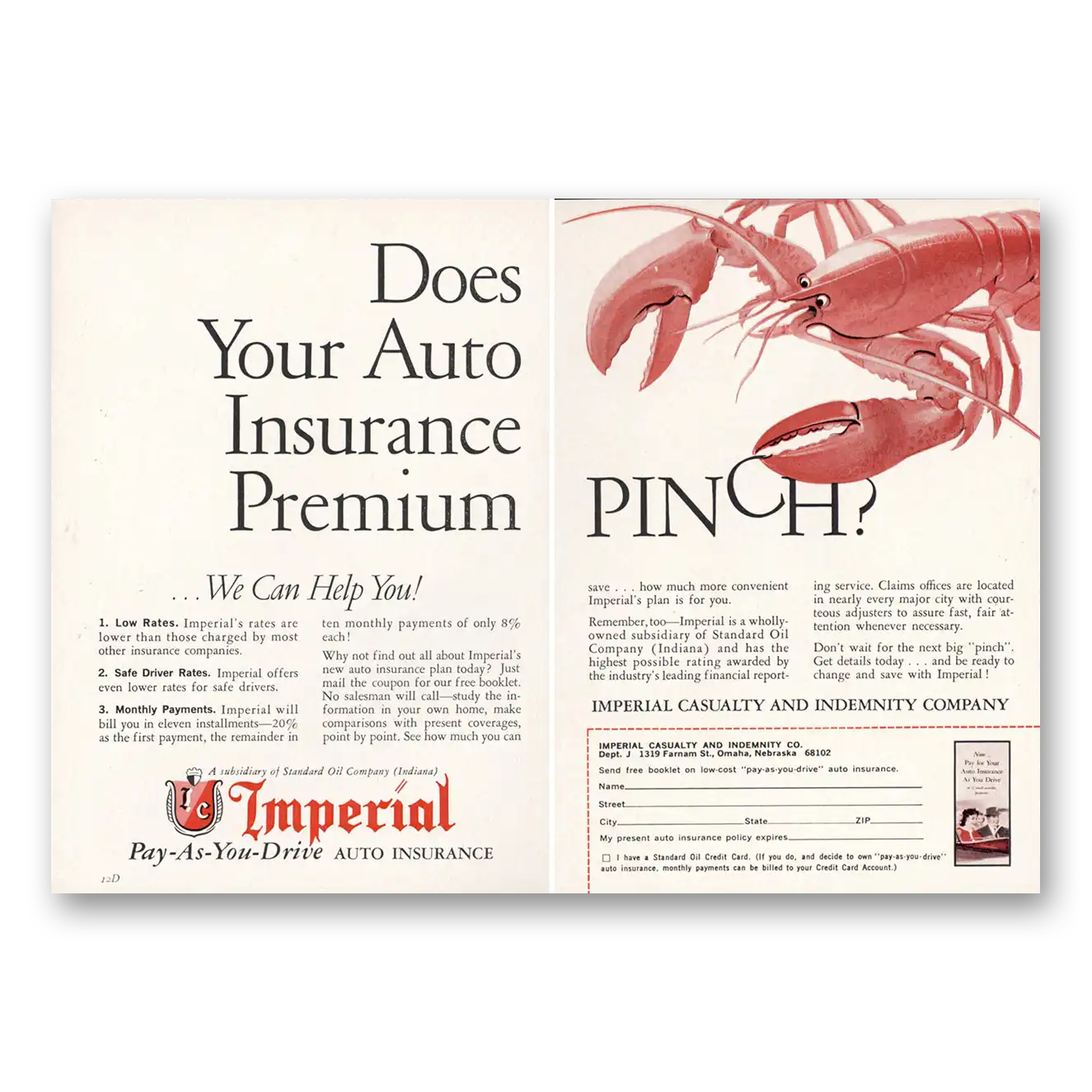 1964 Imperial Auto Insurance Print Ad | Premium Pinch