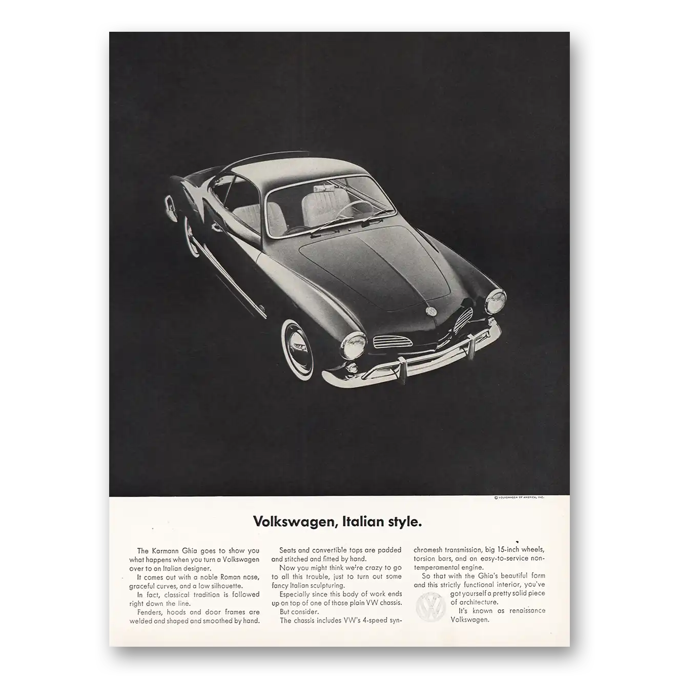 1964 Karmann Ghia Print Ad | Volkswagen Italian Style