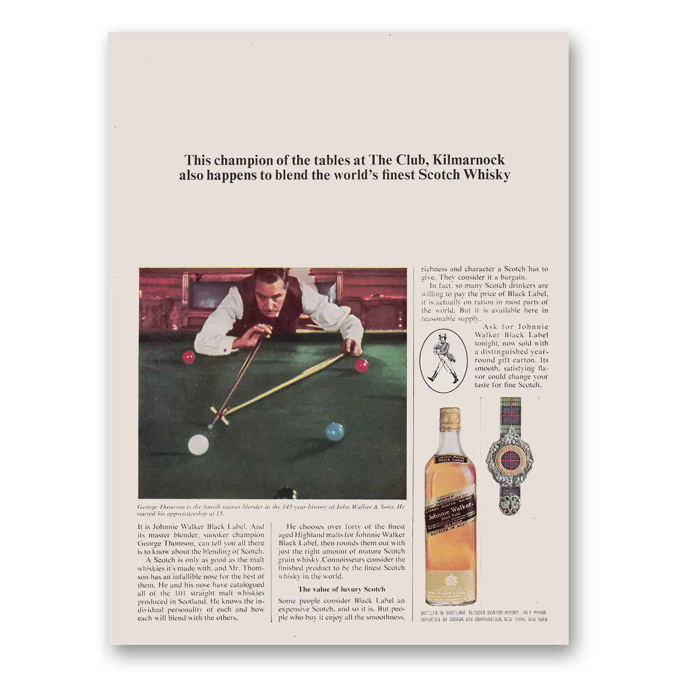 1964 Kilmarnock Whisky Print Ad | Champion Tables