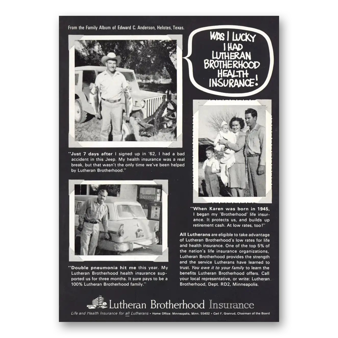1964 Lutheran Brotherhood Insurance Print Ad | Was I Lucky