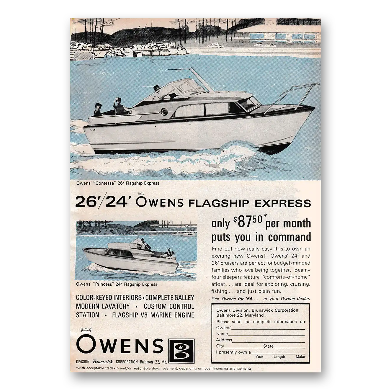 1964 Owens Yacht Company Print Ad | Flagship Express