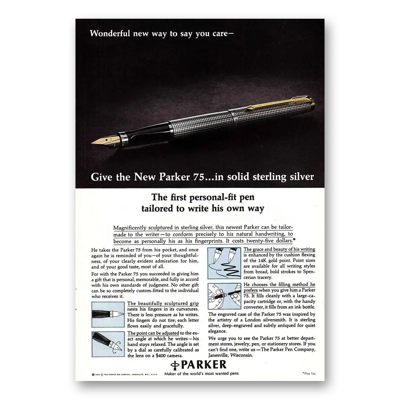 1964 Parker 75 Pen Print Ad | Personal Fit Pen