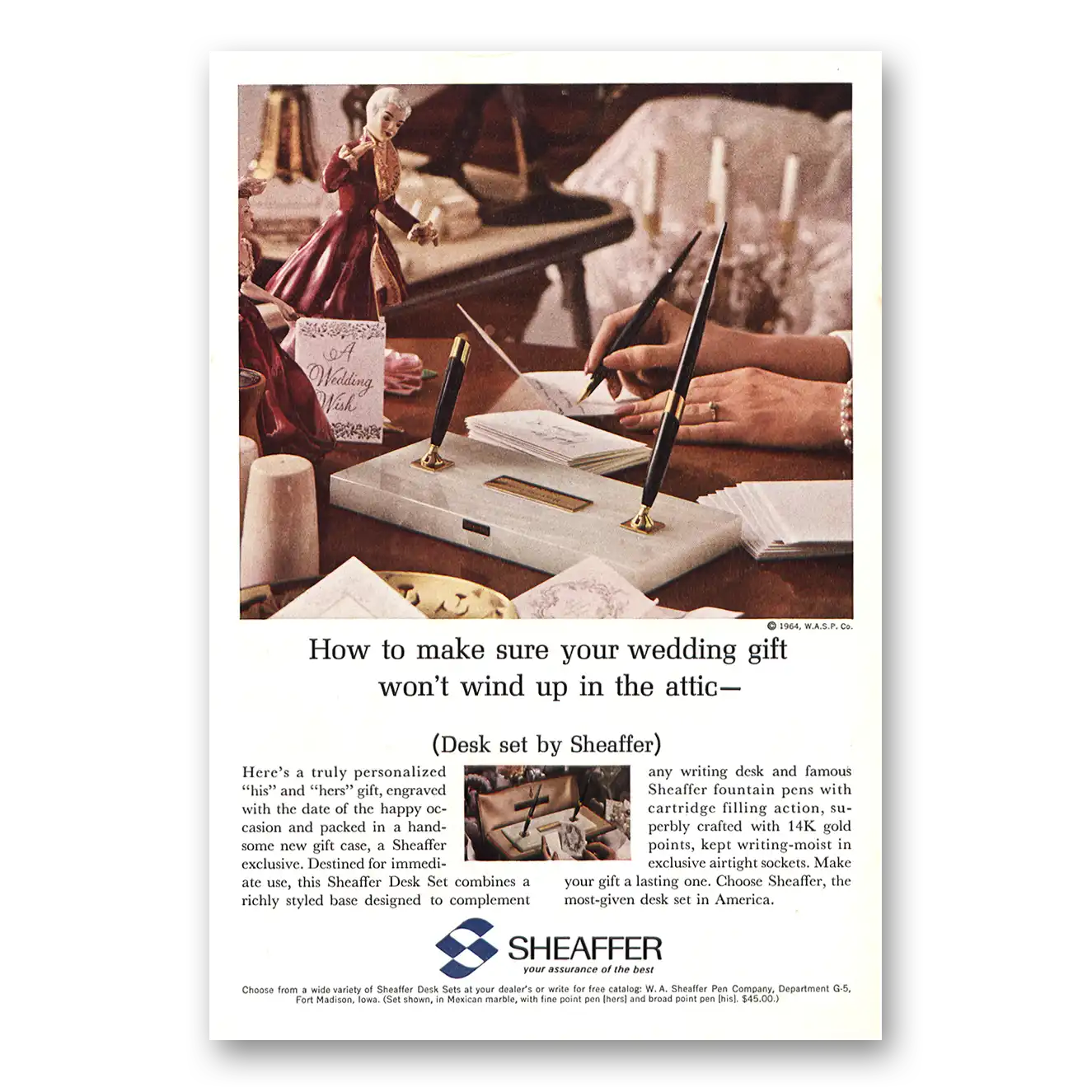 This is an original 1964 Sheaffers Desk Sets print ad published by Sheaffer Pen.