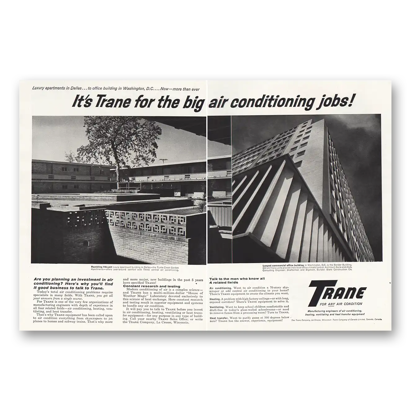 1964 Trane Air Condioning Print Ad | Big Air Conditioning Jobs1964 Trane Air Condioning Print Ad | Big Air Conditioning Jobs
