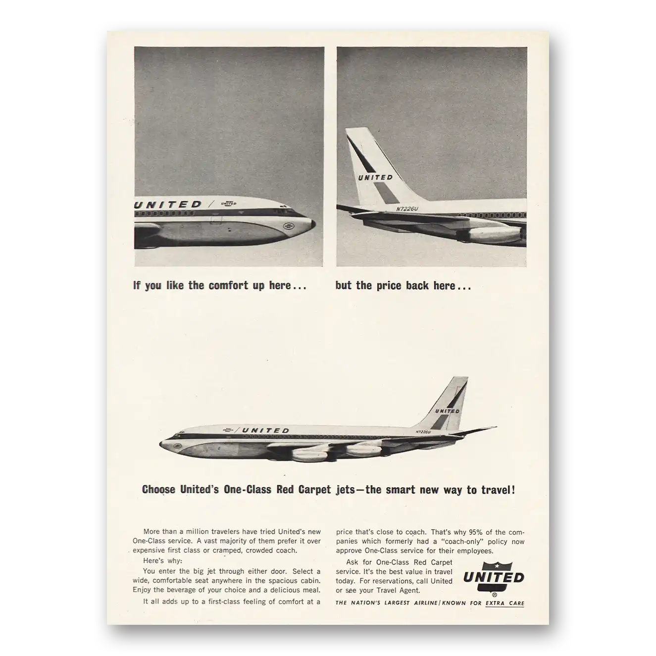 1964 United Airlines Print Ad | One Class Red Carpet Jets
