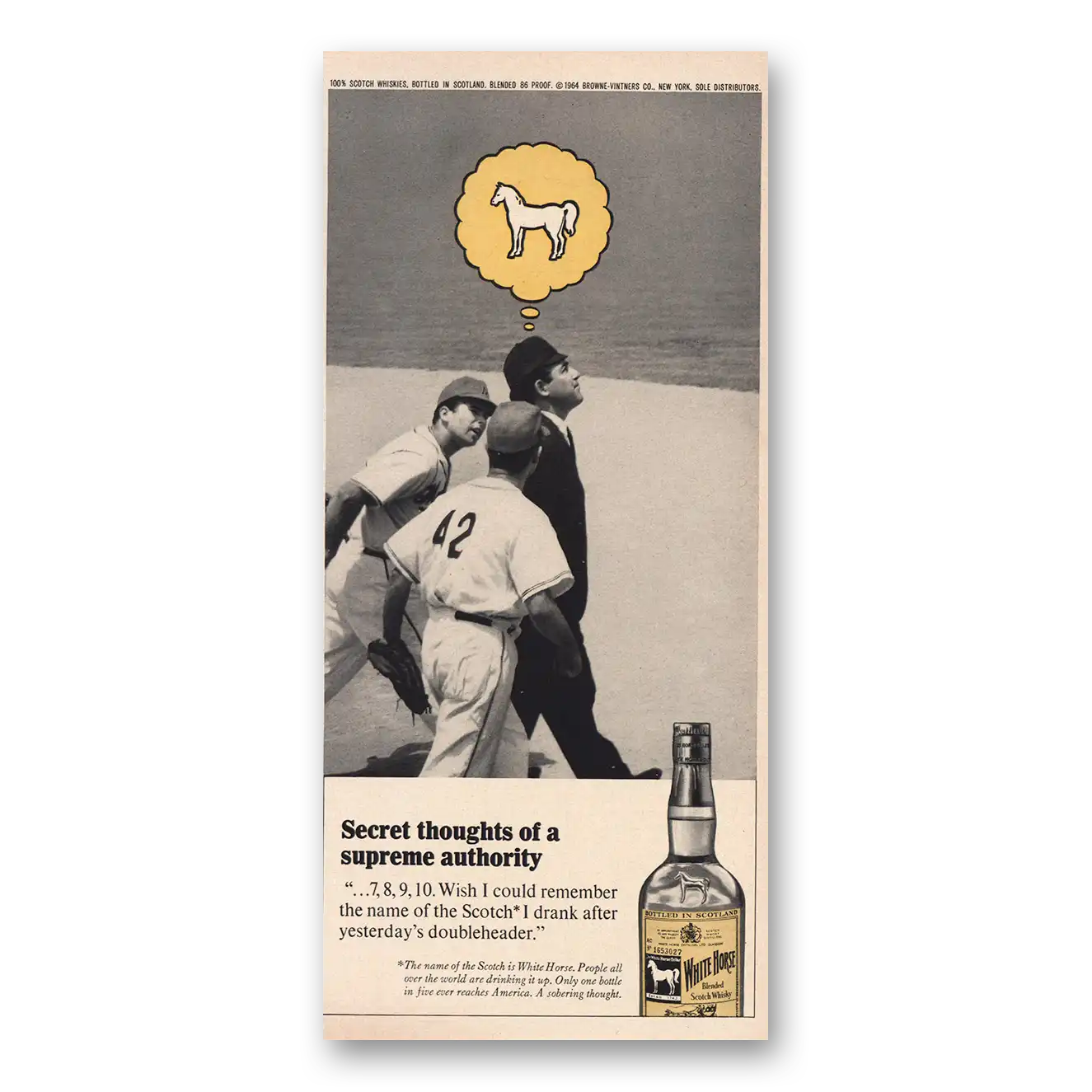 1964 White Horse Scotch Whisky Print Ad | Supreme Authority