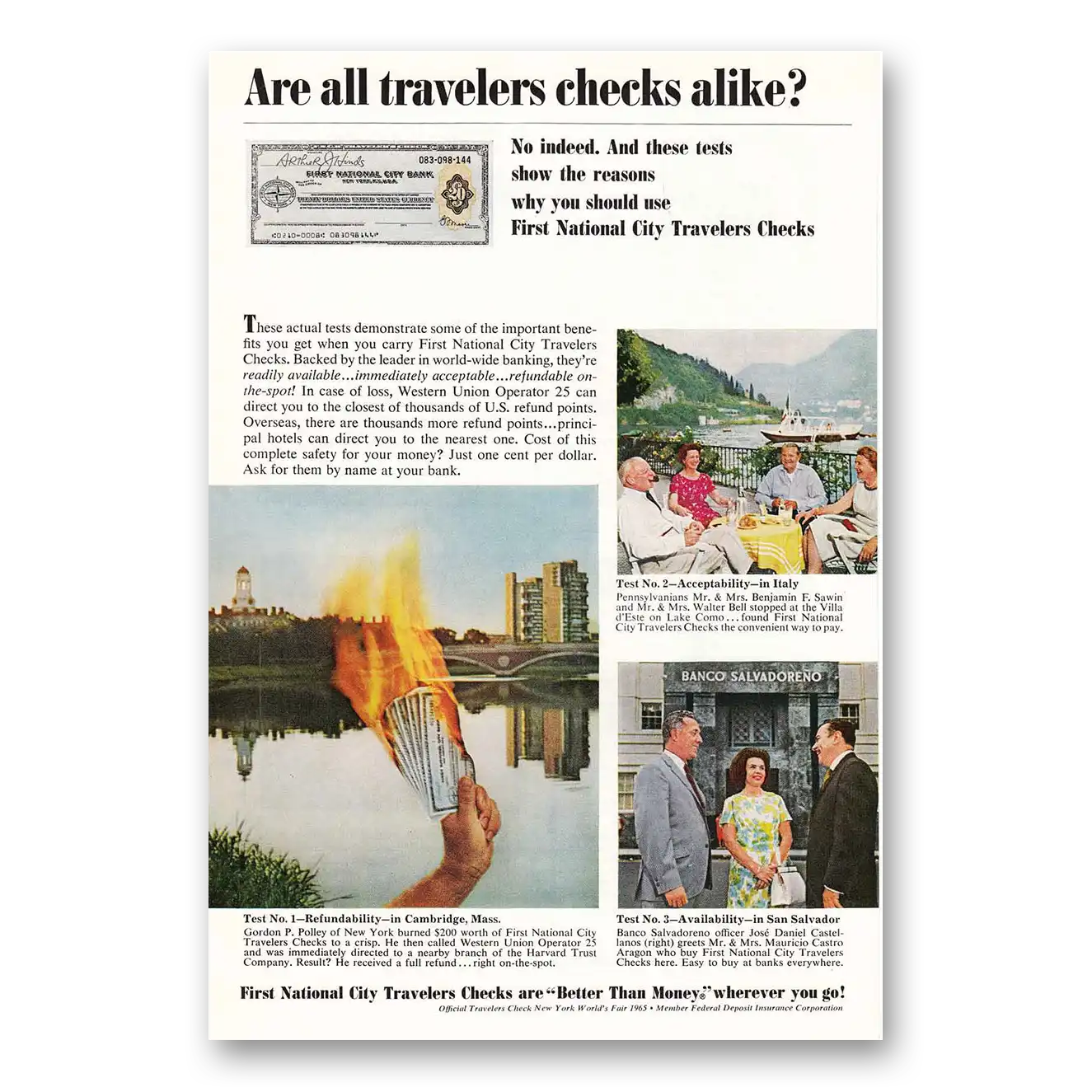 1965 First National City Bank Print Ad | Travelers Checks1965 First National City Bank Print Ad | Travelers Checks