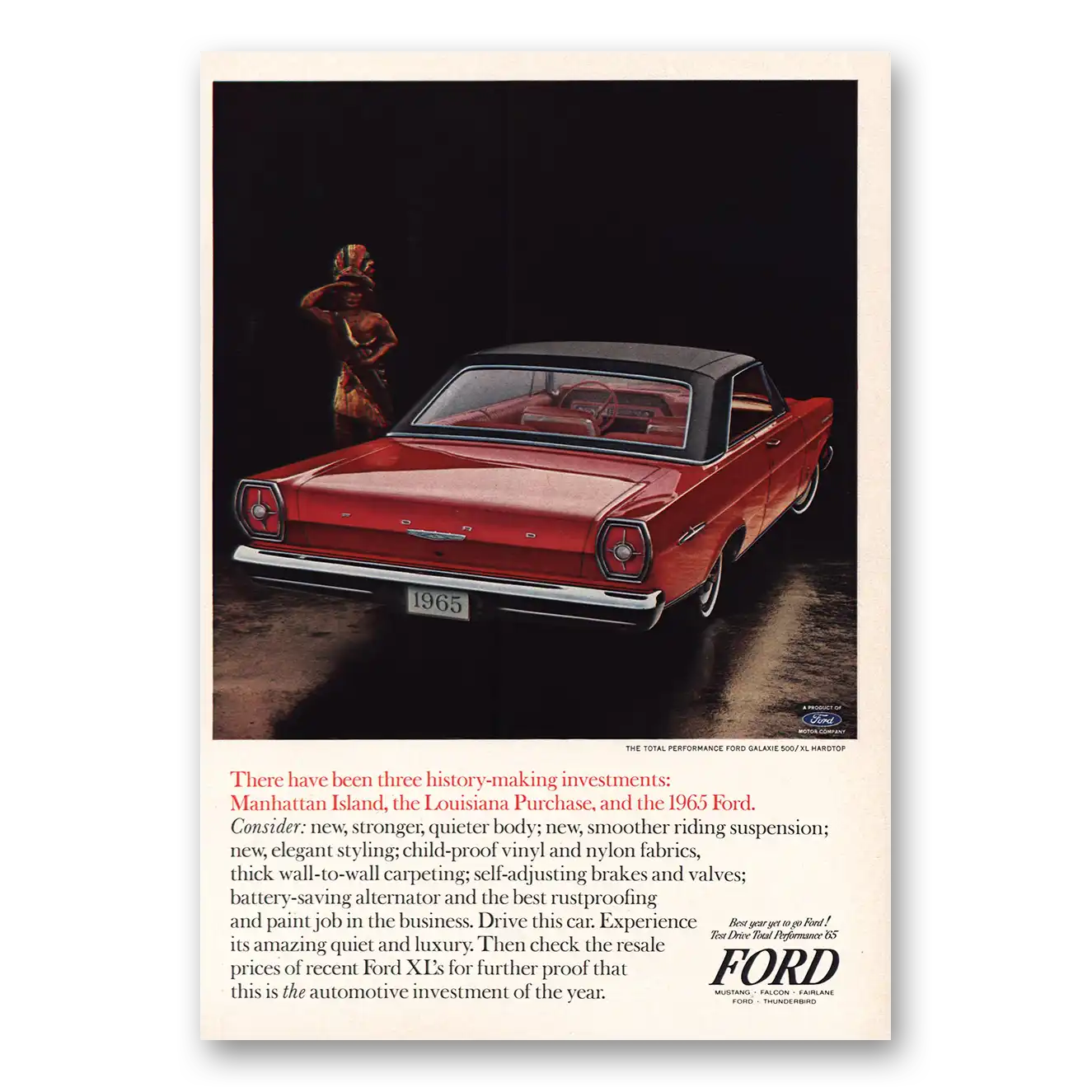 1965 Ford XL Print Ad | History Making Manhattan Island