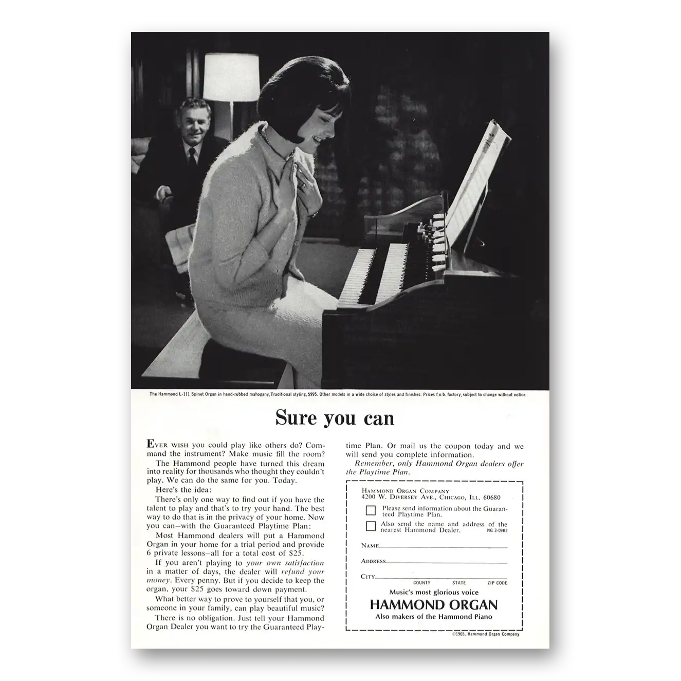 1965 Hammond Organ Print Ad | Sure You Can1965 Hammond Organ Print Ad | Sure You Can