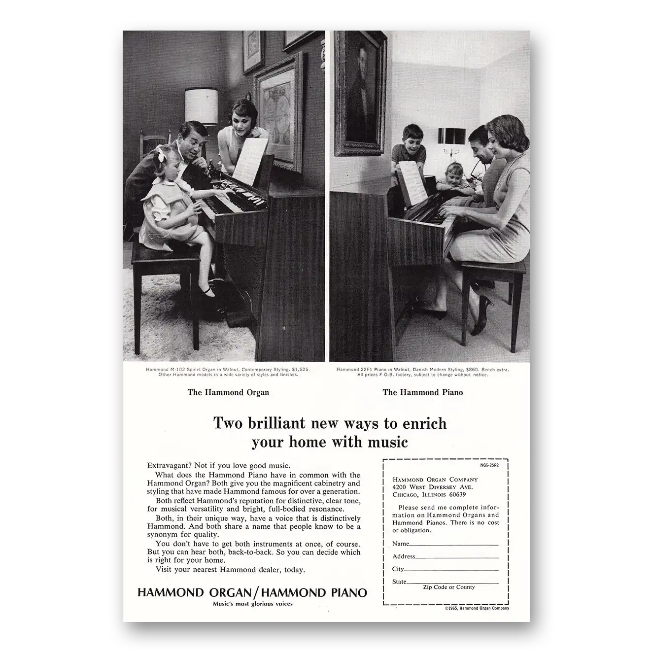 1965 Hammond Organ Print Ad | Two Brilliant New Ways