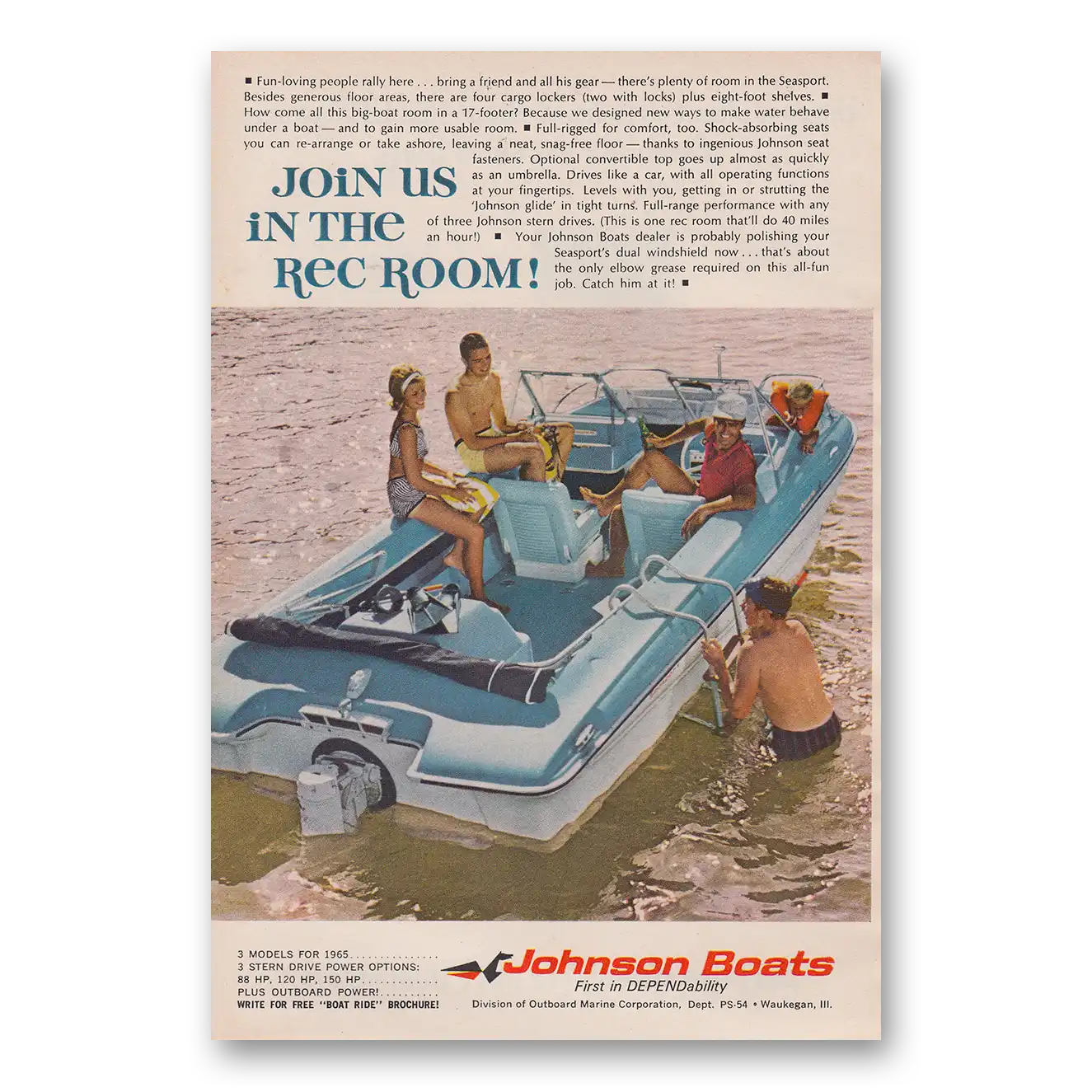 This is an original 1965 Johnson Boats print ad published by Johnson Motors.