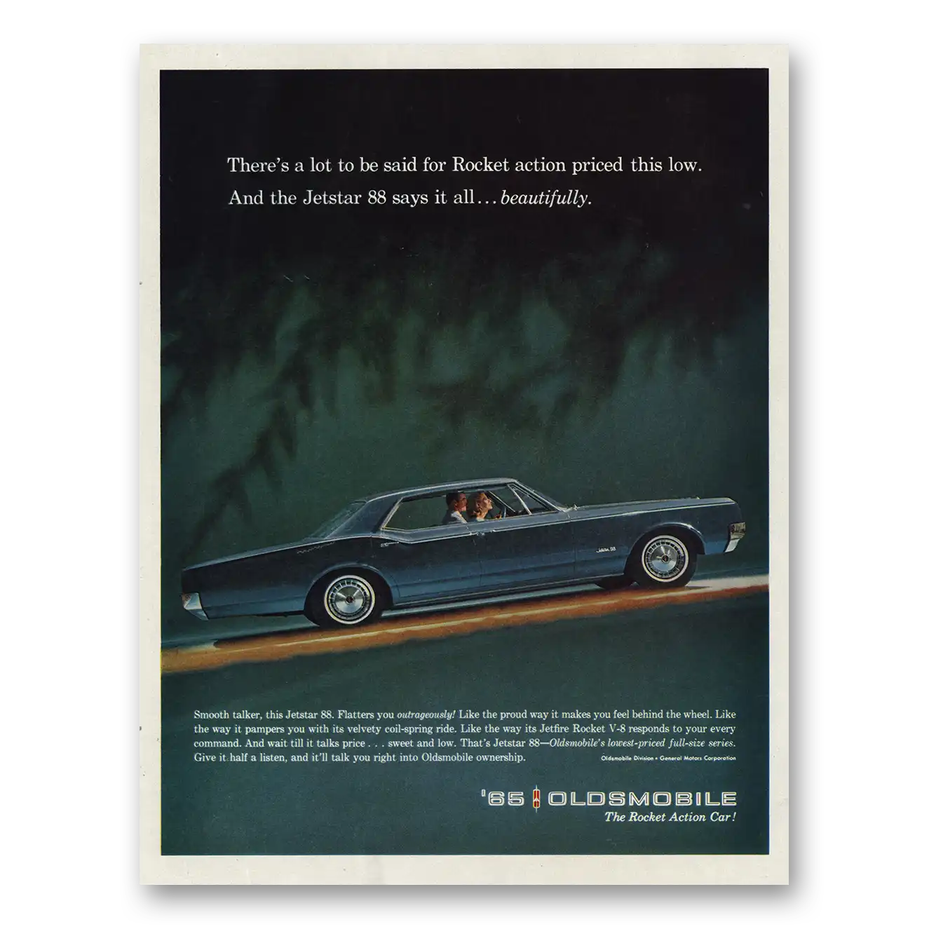 This is an original 1965 Oldsmobile Jetstar print ad published by Oldsmobile.