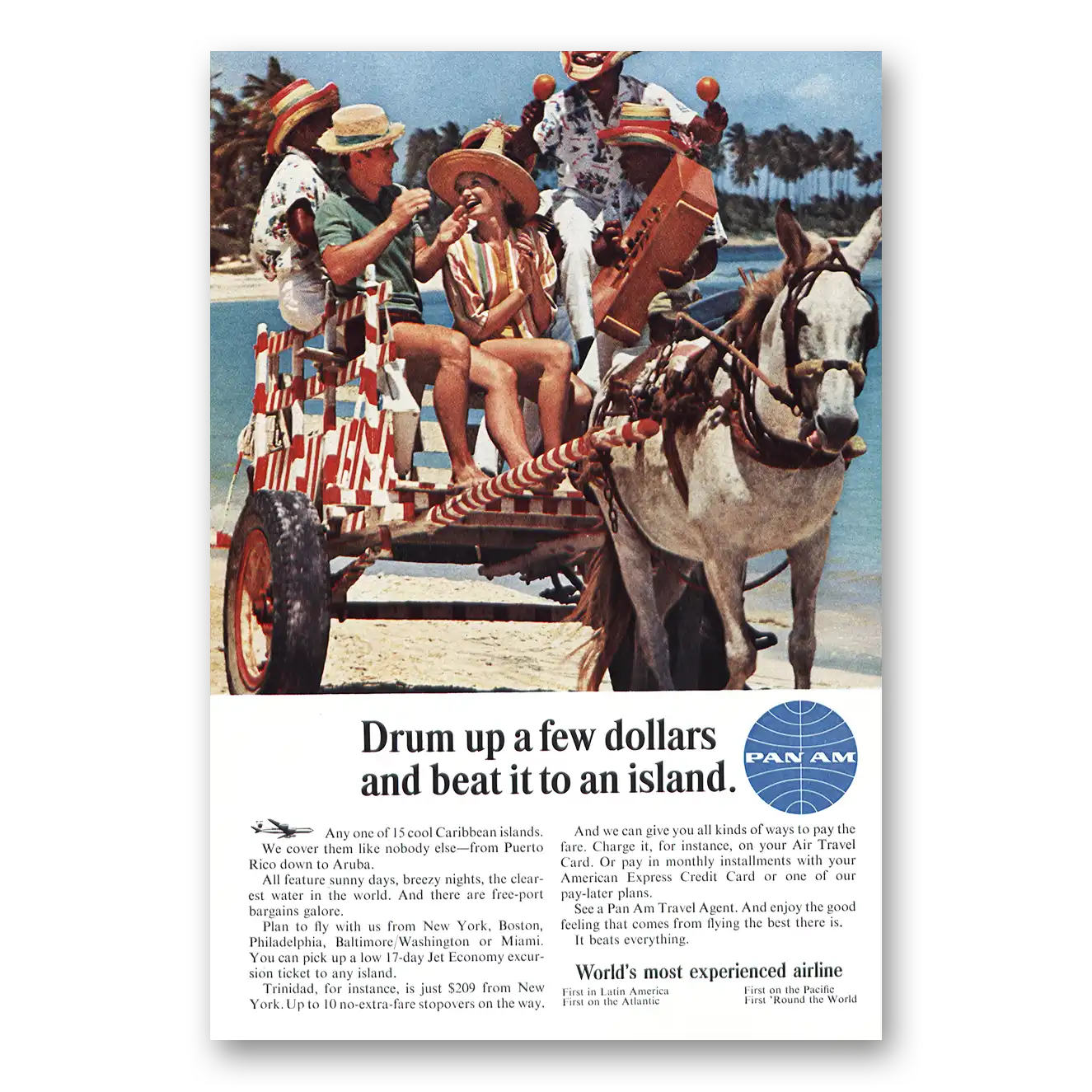 1965 Pan Am Print Ad | Drum Up Few Dollars