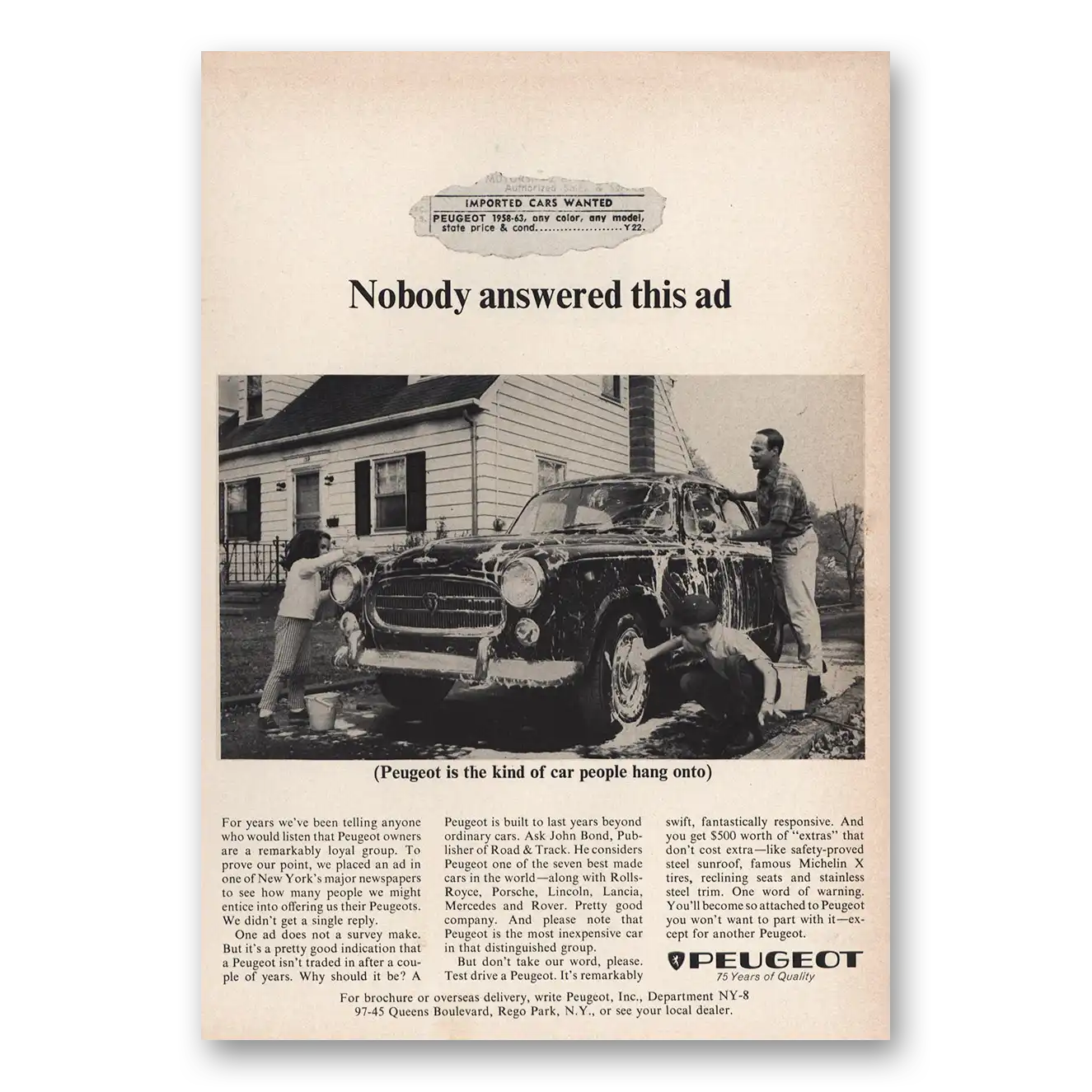 This is an original 1965 Peugeot print ad published by Peugeot.